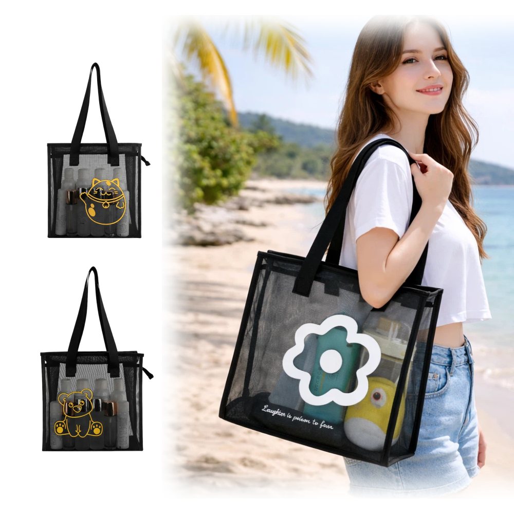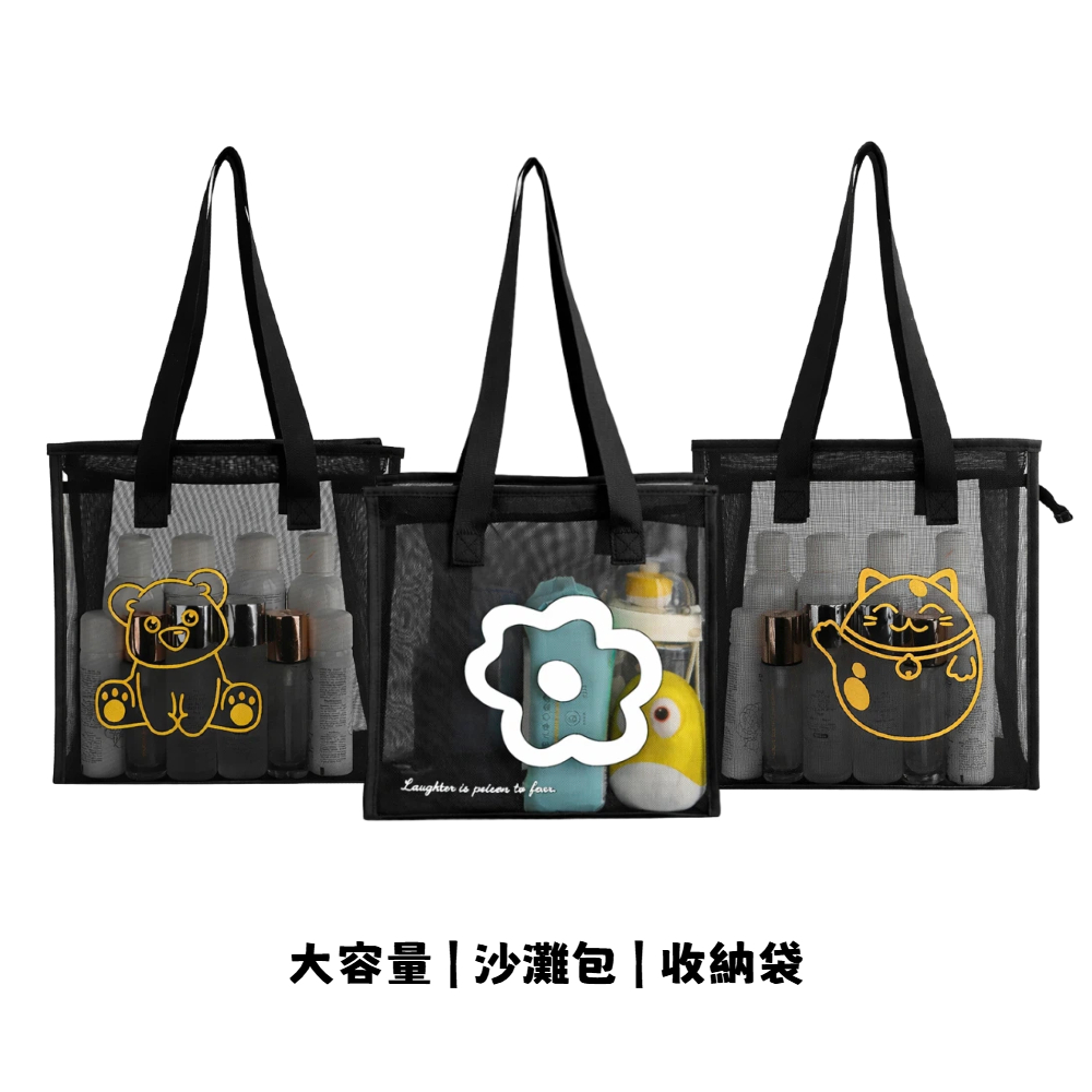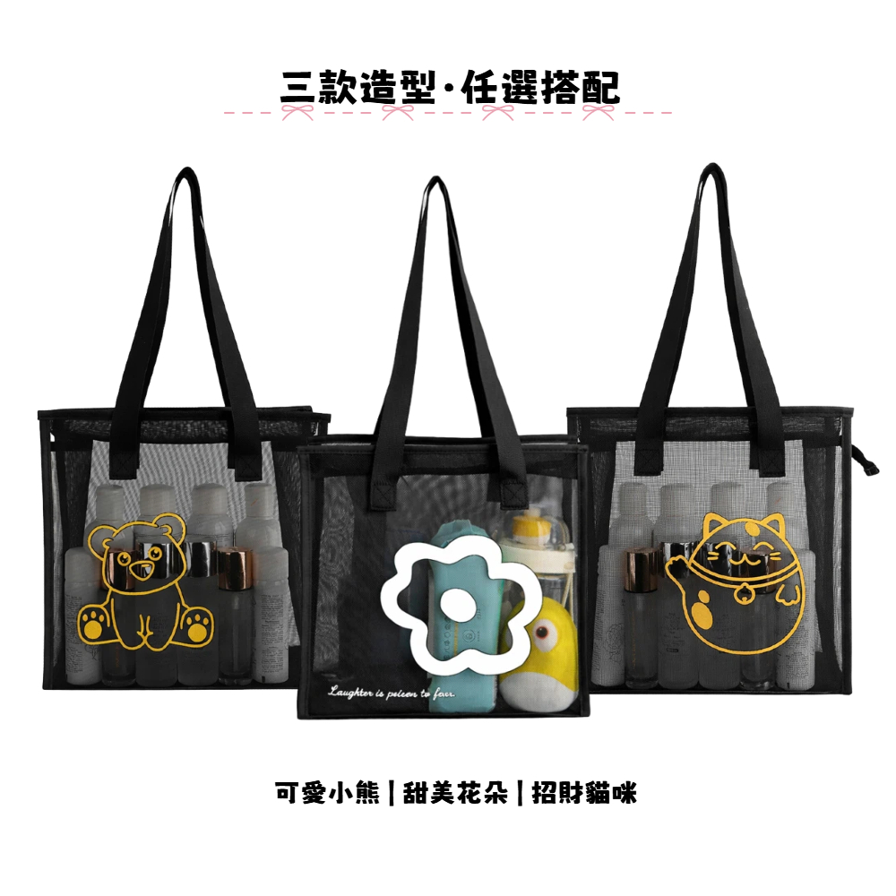 #A&R #韓系 #INS #黑網紗 #透感 #手提 #收納袋 #大容量 #沙灘包 #環保 #盥洗包 #旅行外宿 #健身收納 #購物袋 #招財貓 #熊 #花