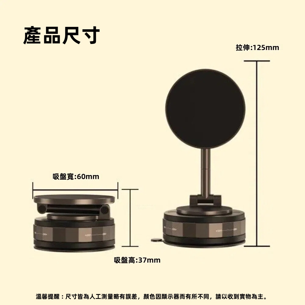 優點:引磁片吸附不傷手機、真空吸盤不傷桌面 (二面皆可使用)