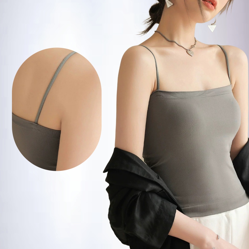 【A&R】絲滑冰絲一字領顯瘦罩杯細肩帶防滑背心小可愛