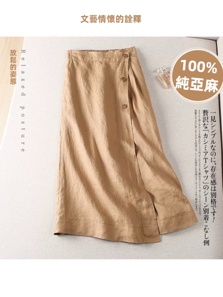【A&R】春夏顯瘦氣質亞麻A字裙 四色任選 -橄欖綠,L