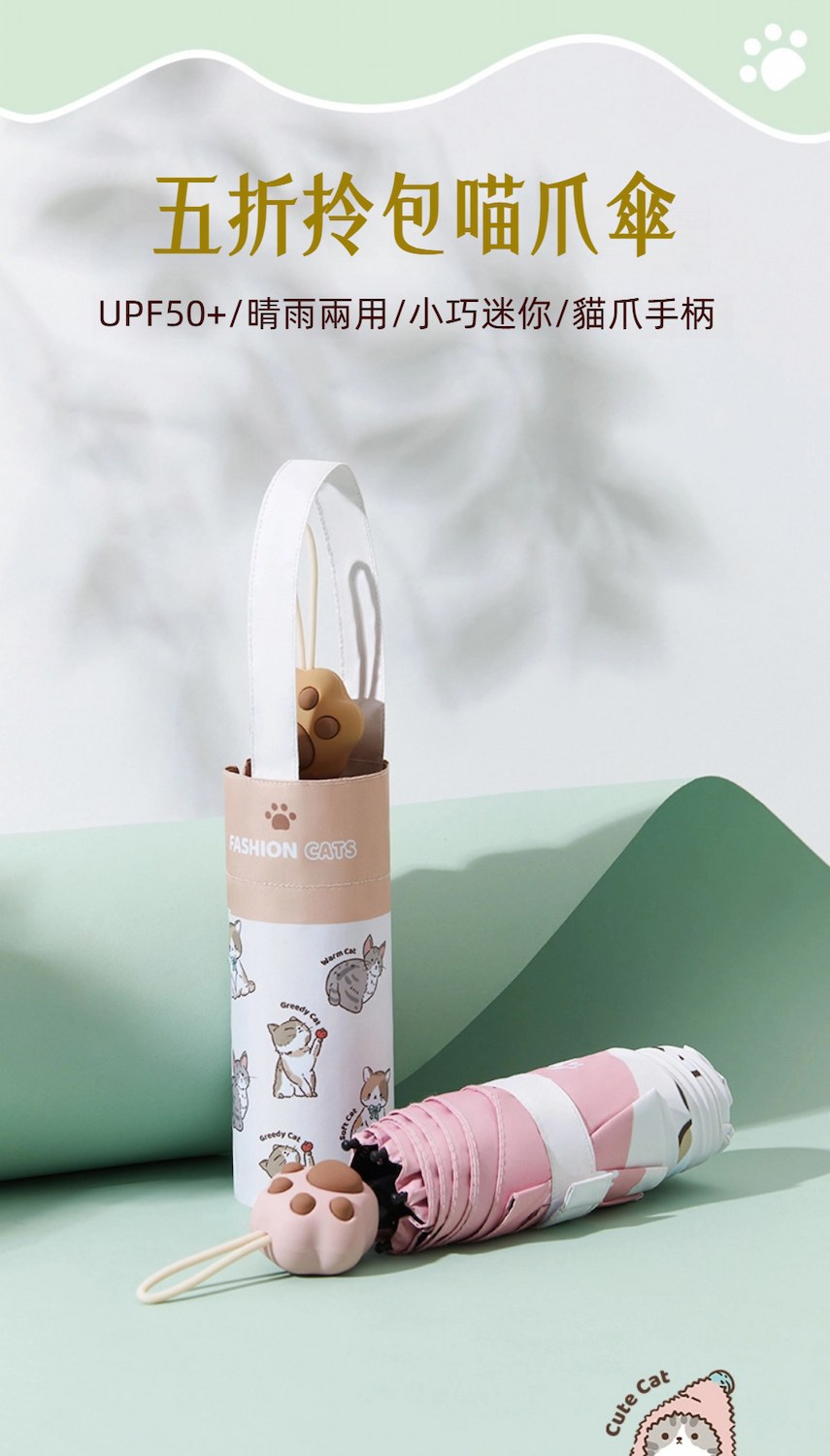 #A&R #吾家有貓 #貓掌 #五折 #收納 #晴雨 #兩用傘 #黑膠塗層 #防紫外線 #抗UV #口袋傘 #小巧便攜 #學生 #上班 #防曬 #速開
