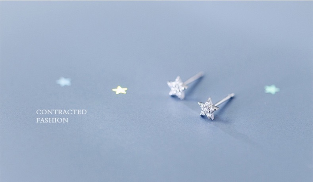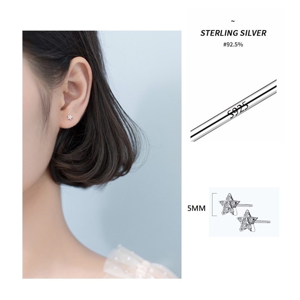韓版S925迷你五角小星星鋯石耳環材質:s925純銀+鋯石配件:附純銀耳扣尺寸:長寬約5mm顏色:白金星星數量:耳環1對產地:China包裝採用馬卡色系飾品盒(隨機出貨)●飾品保養小叮嚀●.飾品需保持乾燥勿碰水,請在每日配戴後用面紙將汗水,汙漬擦拭乾淨,如有拭銀布可再擦拭一遍保持飾品光澤,避免飾品產生變質、氧化。.飾品請勿直接接觸化妝品、香水、清潔劑、海水、雨水、清水,無論是洗手、入 浴、就寢、運動或作家事,請先將飾品取下收妥。.建議穿著打扮時, 飾品最後才穿戴上。.如有體質特殊過敏情況請勿持續佩帶。.請勿接觸高溫及火源區。●備註●.本商品基於個人衛生問題,經拆封使用後,或保養不當發生氧化現象恕無法退換,以確保下一位顧客權益。.七天鑑賞期內退換貨請保持商品完整性,若有贈品、配件煩請一起退回,若有缺件、商品毀損不完整情況發生,恕無法退換貨。.商品圖檔顏色因電腦螢幕設定差異會略有不同,以實際商品顏色為準,請見諒。#韓版 #S925純銀 #迷你 #五角 #小星星 #鋯石 #耳環 #附純銀耳扣 #抗過敏 #養耳 #生日 #情人節 #禮物 #