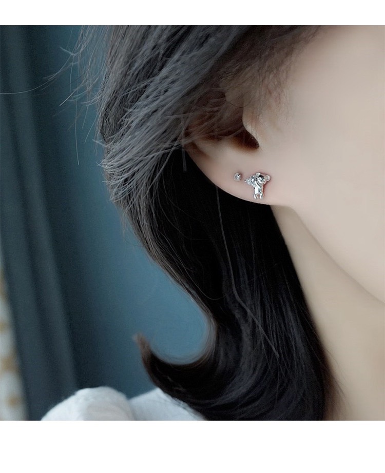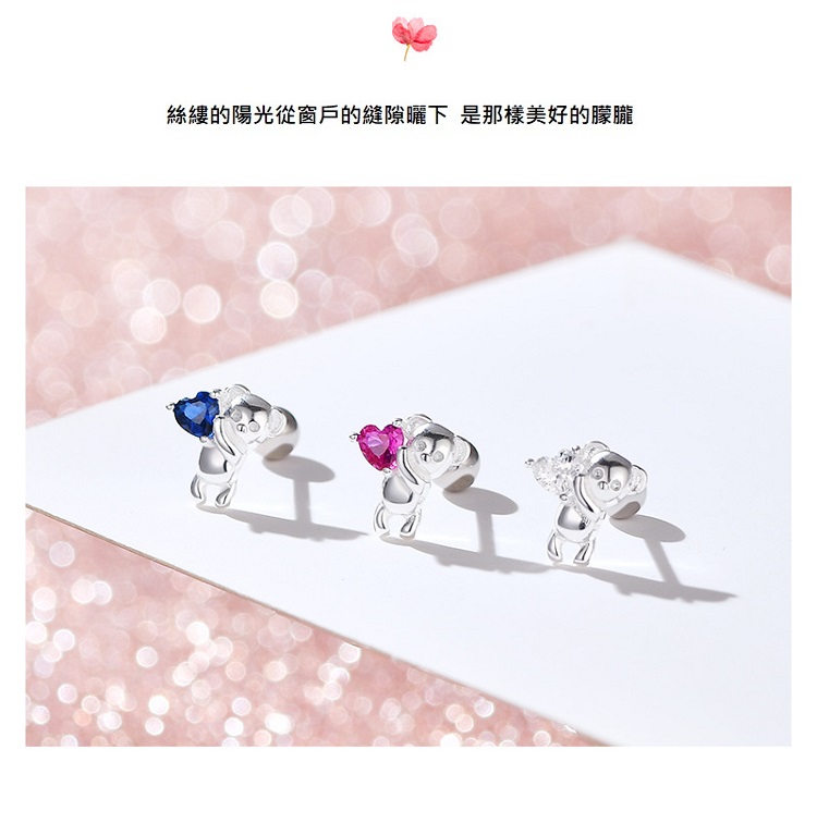 s925純銀小熊手捧愛心轉珠耳環 -白鑽小熊
