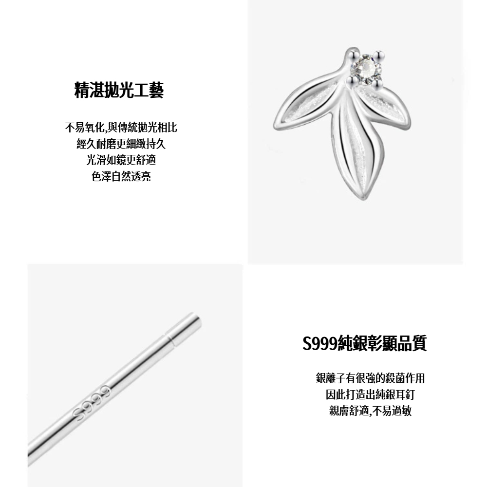 S999純銀精緻簡約晨露葉耳釘款耳環