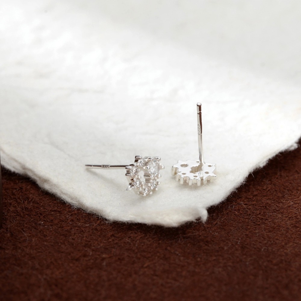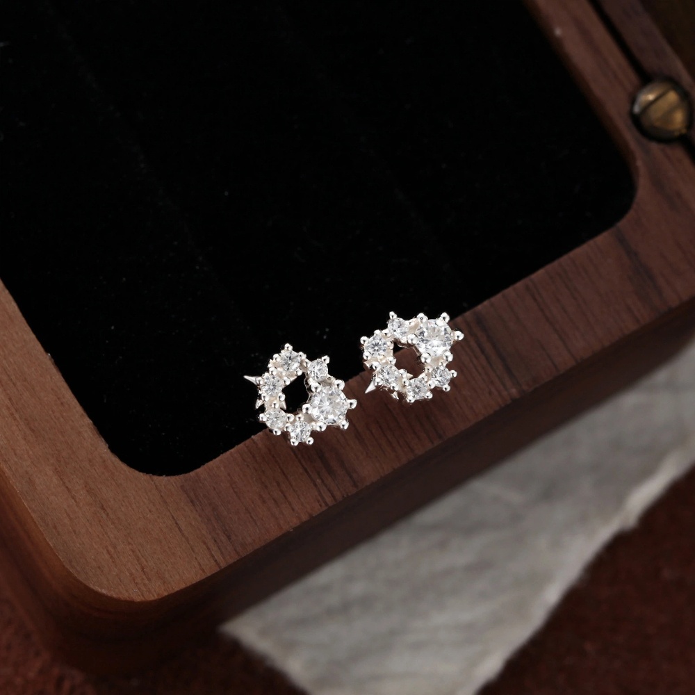 S999純銀韓系個性鏤空鋯石耳釘款耳環