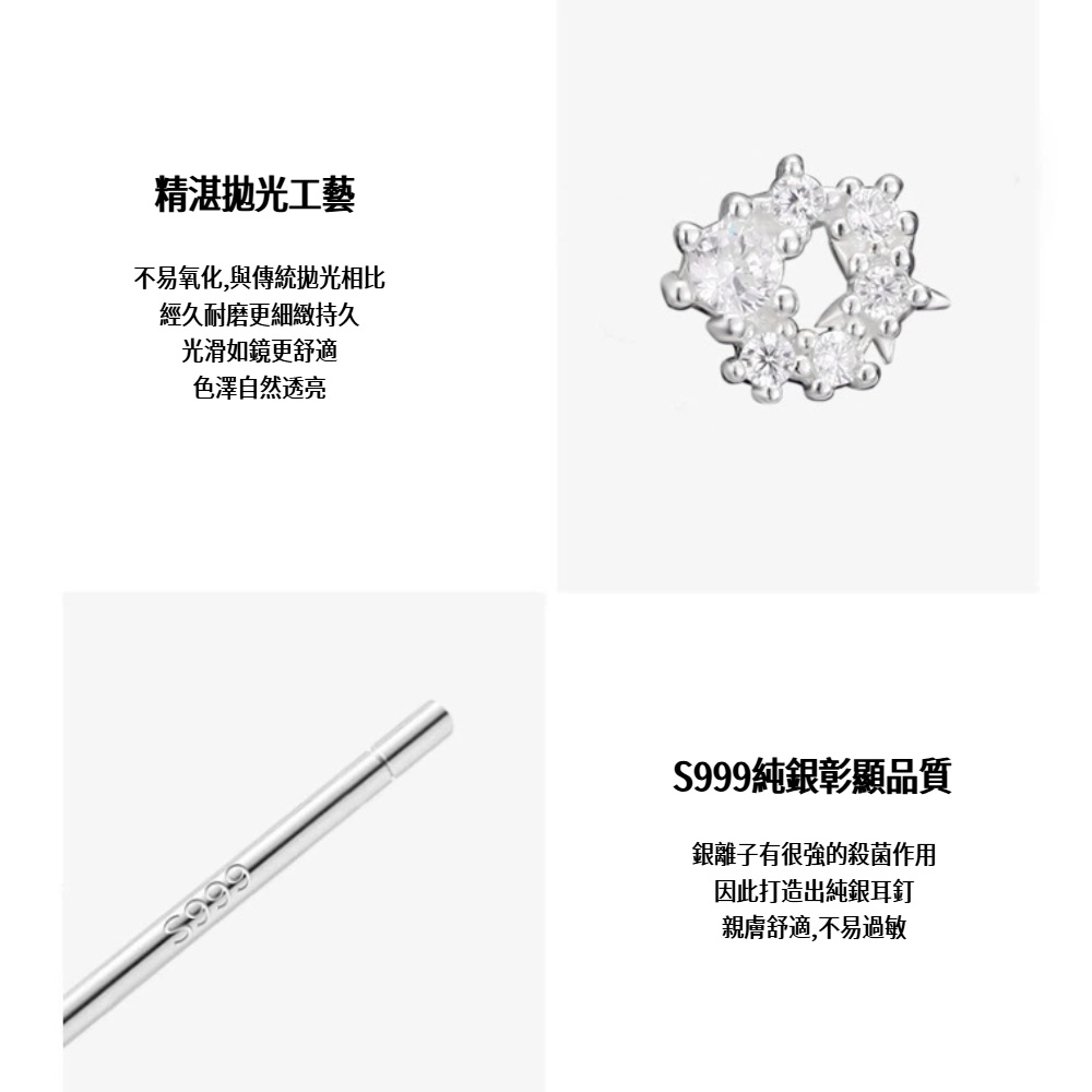 材質 : s999純銀、鋯石、矽膠耳扣(配戴更安心不易滑落)