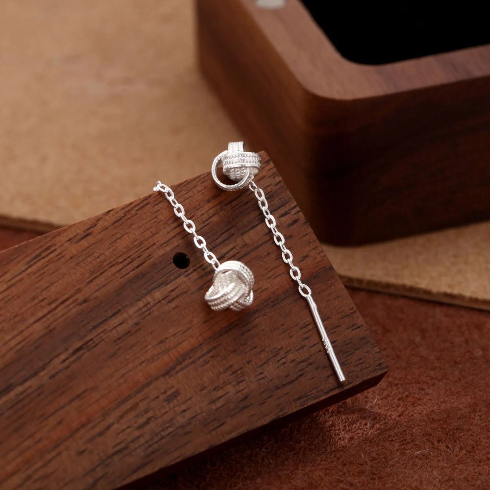 S999純銀如意結流蘇耳線款耳環附馬卡收納盒