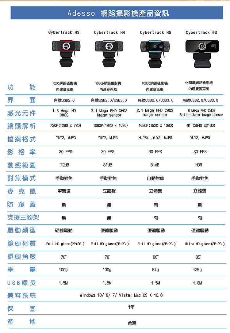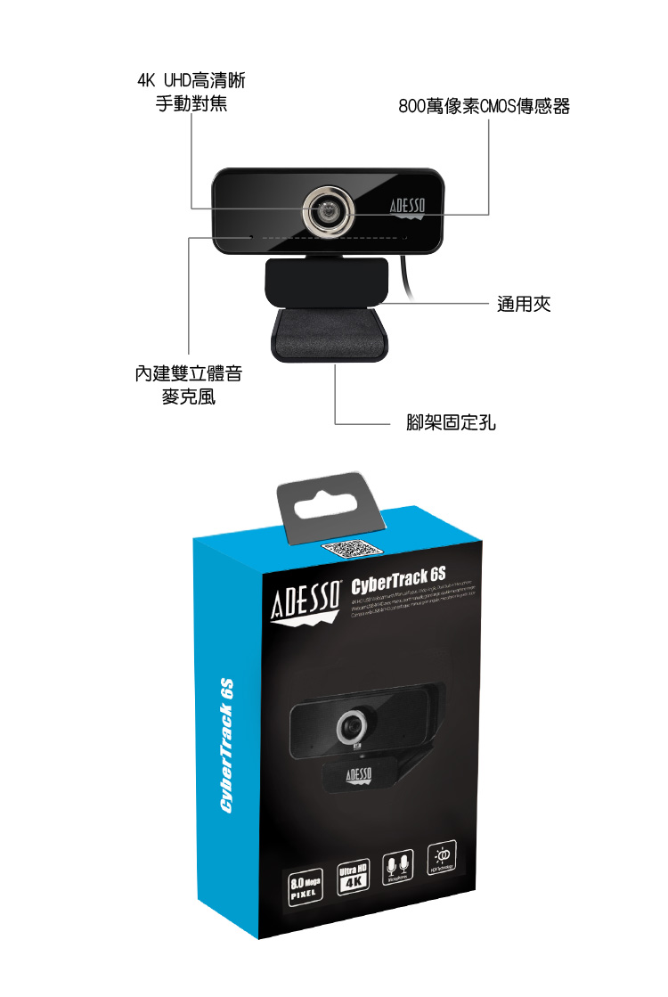 【ADESSO】網路攝影機 視訊鏡頭 6S 4K 台灣製