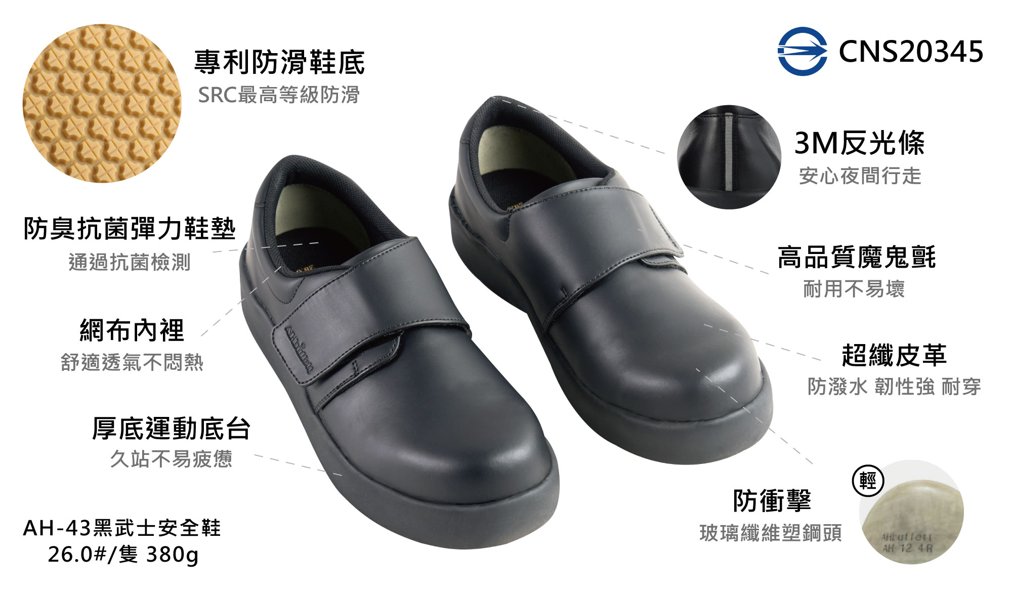 【AHbuffett防滑鞋】AH-43 防滑 玻纖 安全鞋 魔鬼氈款 EVA鞋底 寬楦 CNS20345 輕量 鋼頭鞋 防護鞋 防滑工作鞋 止滑鞋 餐飲