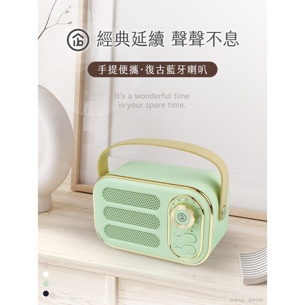 全館現貨,閱讀賣場須知再下訂購買 ❤每天出貨,六日/國定假日休息 ❤品質嚴選,物超所值 ❤https://s-cf-tw.shopeesz.com/file/tw-11134208-7qul9-lk0ofq5tjxdy55商品特色:◆輕巧手提造型,霧面馬卡龍色系,金色細節點綴裝飾◆藍牙V5.0版本,可直接配對使用,擺脫接線的困擾◆可支援記憶卡及隨身碟播放,只需將MP3音樂檔放入即可直接播放 ※隨身碟與記憶卡其系統格式需為exFAT或FAT32!◆支持AUX-IN(LINE-IN),將3.5mm音源傳輸線連接喇叭與手機平板◆支援FM收音機功能,探搜當地區域FM頻道◆TWS無線串聯,兩台喇叭可配對連線,同步播放音樂◆輕巧方便攜帶,運動出遊皆適用 ※TWS無線串聯,需備配二台同款喇叭才可互相串聯!※藍牙配對模式下,才能使用免持聽筒功能。※隨身碟與記憶卡需自備,最高支援32GB容量。※使用記憶卡功能時,其格式需為exFAT或FAT32,使用NTFS格式將會無法讀取。※AUX-IN(LINE-IN)模式下,只能調音量大小,無法使用上/下曲功能。使用說明: ◆開/關/音量旋鈕 順時鐘旋鈕,即為開機及音量調整,反之則關機。◆藍牙播放模式 1.開啟電源,提示音進入藍牙配對模式,此時藍燈快閃,進入待配對狀態。 2.開啟手機/平板藍牙功能,搜尋搜尋『LA-BT-LV50』,點選配對 3.配對成功後語音提示,此時藍燈恆亮,即可開始播放歌曲, 4.藍牙喇叭具記憶功能,下次開啟時不需再重新搜尋配對。 ※藍牙配對模式下,播放音樂中如有來電時音樂將自動暫停, 接聽電話結束后即自動恢復播放狀態。◆TWS無線串聯技術 開啟兩台未配對的喇叭,進入藍牙配對模式,連按其中一台喇叭『DOWN』鍵, 約5-10秒,兩台喇叭將自動連線,此時再與手機配對連線即可使用。◆記憶卡/隨身碟播放 在開機狀態下插入存有MP3音樂的Micro SD記憶卡或隨身碟, 藍牙喇叭會自動轉至對應模式並播放卡片中的音訊MP3音樂。 ※記憶卡與隨身碟,最高支援32GB◆AUX-IN功能 在開機狀態下插將3.5mm音源線連接喇叭與手機、平板…等音頻裝置, 將自動進入LINE-IN模式,即可開始播放音樂。 ※AUX模式下,只能調音量大小,無法使用上一曲和下一曲功能。 ※調整音量時,請先確認手機音量已開啟,再調整喇叭音量。◆FM收音機功能 將內附充電線接上(作為天線用),開啟喇叭長按『UP』鍵,切換為FM模式, 長按『DOWN』鍵,開始掃描當地區域FM頻道,掃描完畢即可使用, 短按上一首或下一首即可切換已搜尋到的頻道。 注意事項:.產品顏色會因網頁呈現而有些許差異,以收到實品為準。.充電時,建議使用5V/1A以上的充電器。.充電時,請勿將產品放在易燃物質上,EX:床/毛毯/書籍…等。.使用記憶卡播放功能時,其格式需為exFAT或FAT32,使用NTFS格式將會無法讀取。.如長時間不使用,建議至少每一個月為產品充一次電,以延長電池使用壽命。.內建充電式鋰電池,請勿嘗試取出電池或私自拆卸,以免產品故障或損壞。.請勿靠近水源、火源,以免產品發生故障。.請勿將音量調過大聲,以免影響聽力。.請勿將本機放置於高溫高濕悶熱不通風或是暖氣房器具的附近。.請勿讓孩童玩耍,細小零件可能有令孩童窒息的危險。.隨身碟與記憶卡需自備需自備,出貨不附。.TWS無線串聯,需二台同款喇叭可互相串聯!.尺寸與重量皆採手工測量,±5%誤差屬正常範圍。 轉載警示: 鈞嵐(立嵐)之商品圖文、影片或商標等,皆屬鈞嵐(立嵐)版權所有, 若未經同意即任意轉載刊登者,我司將進行相關智慧財產著作權與 商標權及商業法的追訴權利。 商品規格:.商品型號:LA-BT-LV50.商品名稱:aibo LV50 手提便攜 復古藍牙喇叭.商品顏色:深藍/綠色/粉紅/白色.商品尺寸:約 5.9 x 12.2 x 7.5 cm .商品重量:約 213 g.喇叭阻抗:4Ω.喇叭單體:Ø 45mm x 1.喇叭功率:5W.電壓電流:USB DC 5V/1A.響應範圍:50Hz-18KHz.信 噪 比:≧65db.失 真 率:±5%.藍牙版本:V5.0+BR+EDR+BLE.藍牙距離:8-10米 (直線距離無遮蔽物).藍牙協議:A2DP/AVRCPP.音頻輸入:藍牙無線/TF卡/USB隨身碟/AUX/FM.電池類型:內建可充電式鋰電池.充電介面:TYPE-C.充電時間:約 3 小時 (依充電方式而有所遞增).使用時間:約 6-8 小時 (依使用方式而有所遞減).商品材質:高級塑料、電子零件.檢磁證號:R31921 RoHS.NCC 證號:CCAH23LP4030T8.包裝內含:手提藍牙喇叭 x1、充電線 x1、音源線 x1、說明書x1.產品保固:非人為因素下,本產品自購買日起保固3個月 內附線材屬耗材品,不在保固範圍內(新品瑕疪除外).產 地:中國大陸