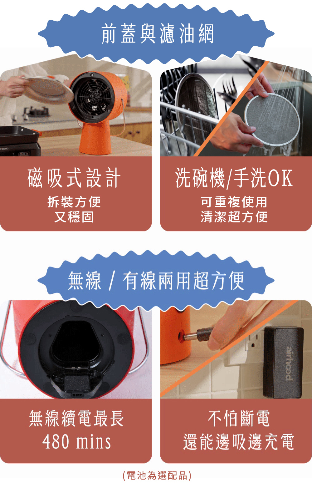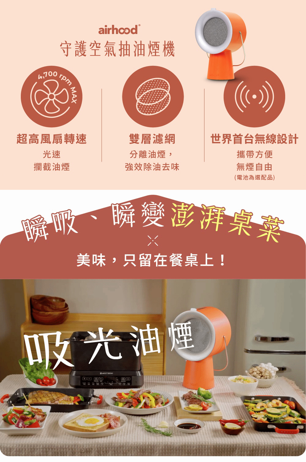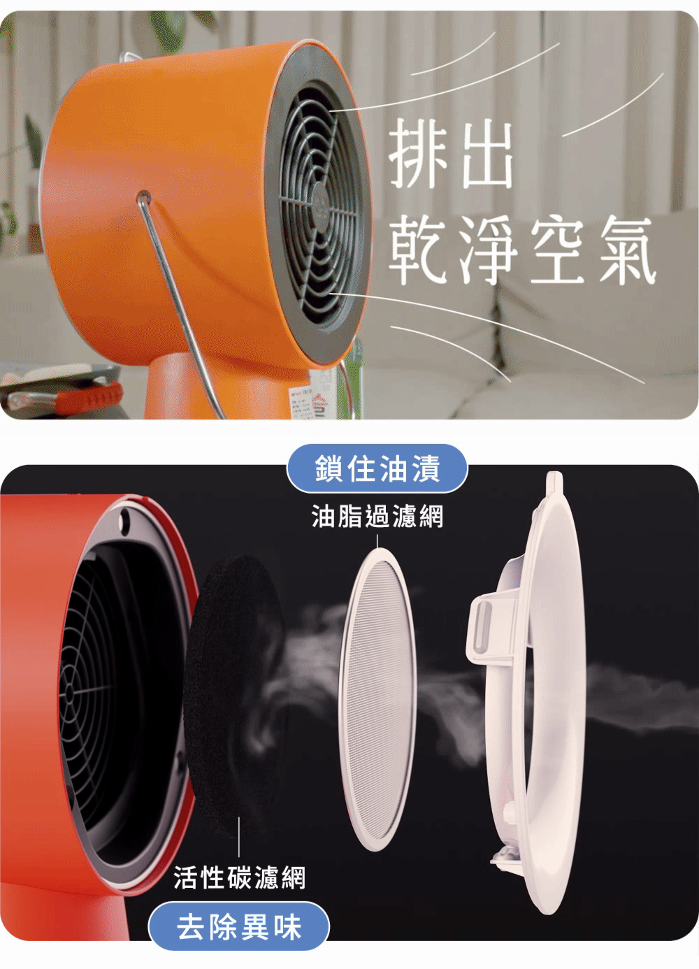 產品內容物:抽油煙機(含濾油網前蓋、不透鋼濾油器)、活性碳過濾器X2、電源線(含變壓器)