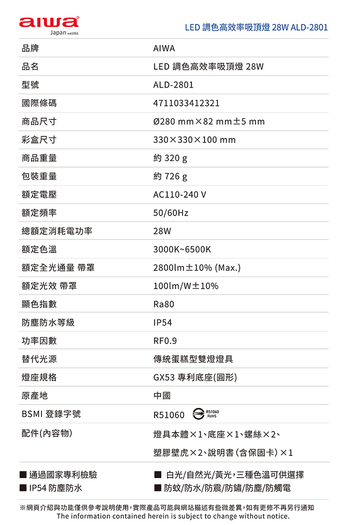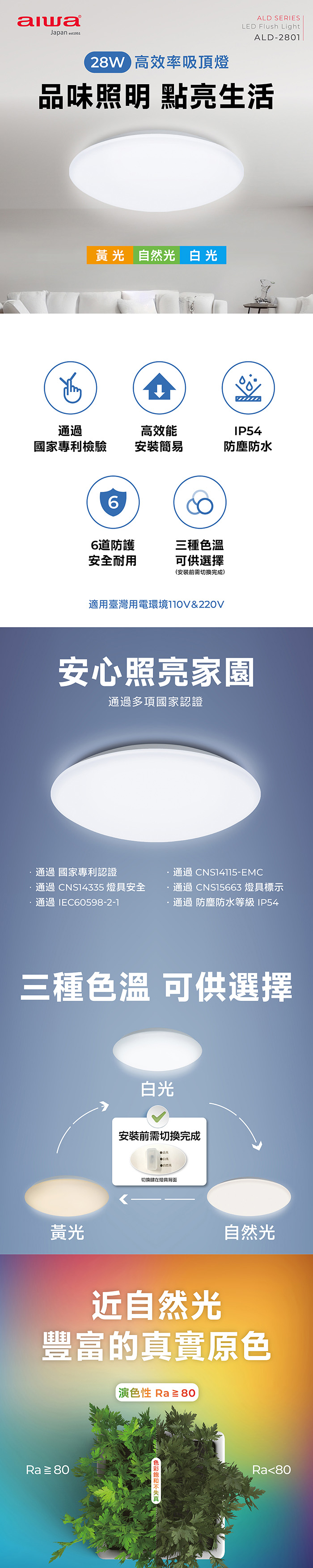 AIWA 愛華 28W LED調色高效率吸頂燈 ALD-2801