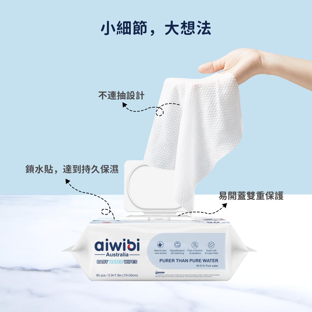 🔥 口號: 從最微小的事開始累積,彼此充滿愛的照顧。 愛薇彼~最愛你。🔥 品牌:aiwibi🔥 材質: 水 辛酸甘油脂 檸檬酸 甘油 十六烷基氯化吡啶 脫氫乙酸 🔥 產地:中國🔥 保存期限:3年🔥 寶寶手口可用,溫和呵護嬌嫩肌膚,媽媽們信賴。【商品規格】✅純水EDI嬰兒濕紙巾,加厚帶蓋款,不會連抽喔。✅ -99.91 EDI超純水確保高純度和安全性。✅ 含有維生素B5,他的作用是抗氧化抗炎改善皮膚修復皮膚喔。✅ 紙巾由天然植物纖維製成,溫和親膚,適合嬰兒肌膚。✅ 溫和配方符合食品級安全標準,不含刺激性化學物質。✅ 超大、厚實、柔軟,提供更寬的清潔表面。✅ 不連抽設計,方便單手使用每張濕紙巾。