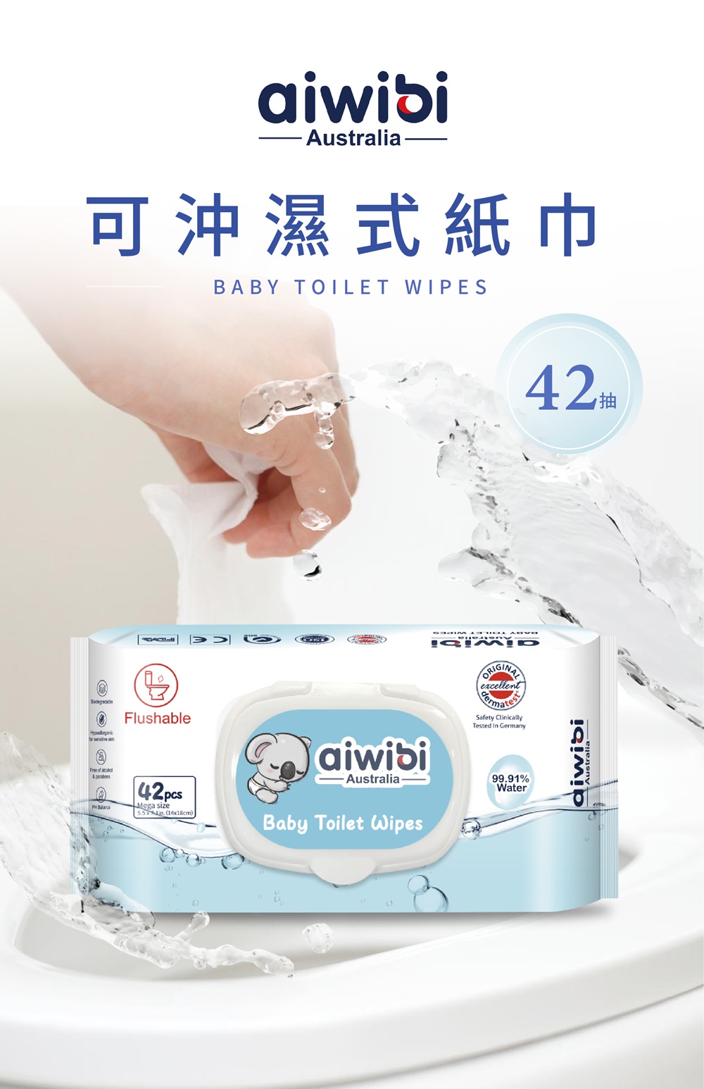 Aiwibi嬰兒廁所濕紙巾 42抽9包入 濕廁紙 濕紙巾 衛生紙 敏感肌適用 可沖洗且可生物降解