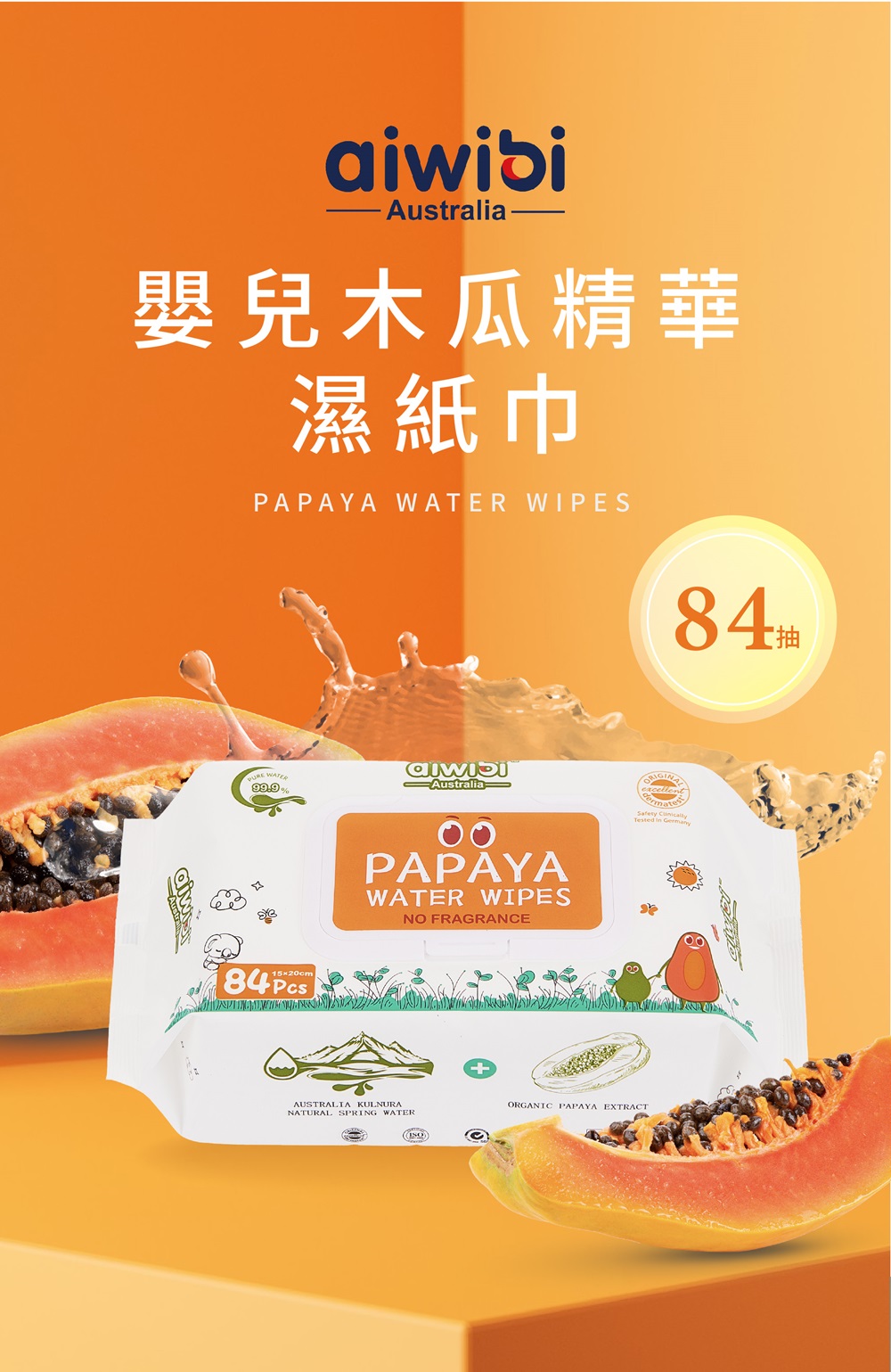 aiwibi 愛薇彼 超純水嬰兒木瓜精華濕巾 84抽9包入 純水濕巾 寶寶濕巾 澳洲庫努拉天然泉水 敏感肌適用 無味