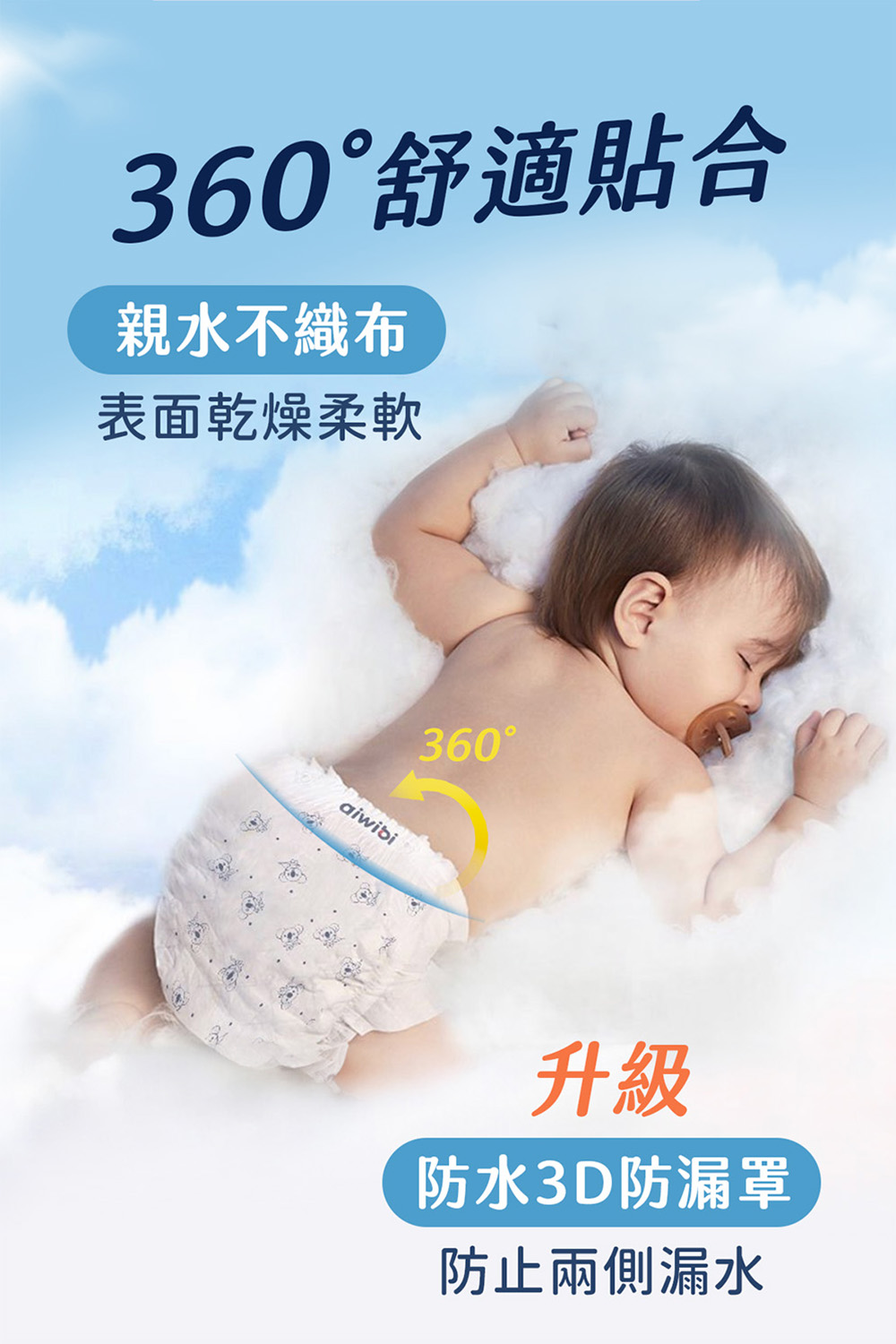 🐨Aiwibi品牌介紹Aiwibi是來自澳洲的嬰兒護理品牌,Aiwibi嬰兒紙尿褲和嬰兒褲通過了德國Dermatest臨床測試,被評為“優秀”,這是世界上最高的品質測試標準。此外,它還獲得了ISO9001、CE、GMPC和FDA標準的認證。Aiwibi代表著對提高嬰兒安全和全面護理的負責任的態度。 Aiwibi的忠實客戶群已擴展到90多個國家。Aiwibi正致力於成為您的第一和最佳選擇,並始終提供超越您期望的服務。🔥 口號: 從最微小的事開始累積,彼此充滿愛的照顧。 愛薇彼~最愛你。🔥品牌:aiwibi🔥材質/成分:上層:紡粘無紡布聚乙烯/聚對苯二甲酸乙二醇酯吸水層:高吸水性聚合物背層:紡粘無紡布聚乙烯/聚對苯二甲酸乙二醇酯,薄膜聚烯烴🔥 產地:中國🔥保存期限:3年產品特點:1,面層弱酸性表層採用優質柔軟無紡布製成,與寶寶的皮膚 pH 值相匹配,為嬌嫩的皮膚提供溫和、防過敏的保護2,PE膜(技術)MicroAiry Film™獨家 MicroAiry Film™,設計有數十億個超細微孔。這種透氣 PE 薄膜可讓空氣自由流動,同時防止水通過,使透氣性提高 50%3,芯體(技術)1.8mm超薄但吸水性極佳,其蜂巢狀仿生結構可有效引導液體。採用日本技術的 100% 優質 SAP 製成,可快速鎖住大量水分。4,護圍增強型雙重防漏保護我們的防漏保護採用 45 毫米雙重屏障和腿部袖口折疊設計,可提供卓越的側漏保護5,吸尿量長達 12 小時的保護只需一片尿布即可保持整夜乾爽。我們的 Ultra-Thin Core™ 可立即吸收而不會再次潤濕,吸水量高達 1000ml*,可防止結塊,從而提供持續的舒適感和防漏保護6,腰圍(技術)360° 人體工學舒適腰帶™:特殊蕾絲確保貼身,減少皮膚摩擦。採用人體工學設計和高彈性,提供全包覆防漏和舒適運動7,面層紋路3D珍珠圖案減少皮膚接觸面積和摩擦,透氣性提高30%,同時溫柔呵護寶寶的嬌嫩肌膚。8,尿顯遇尿時顏色會從黃色變成綠色,可以快速輕鬆地知道何時需要更換