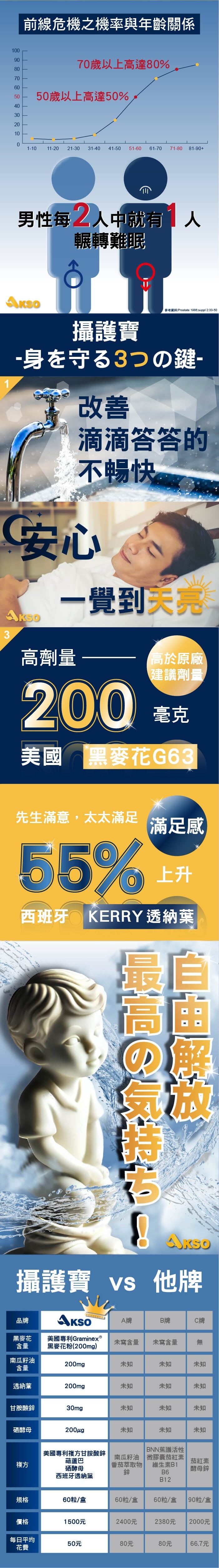 美國專利萃取黑麥花G36®,添加南瓜籽油、高單位酵母硒、美國專利複合甘胺酸鋅等成分,提高男性生活品質,促進家庭和諧。