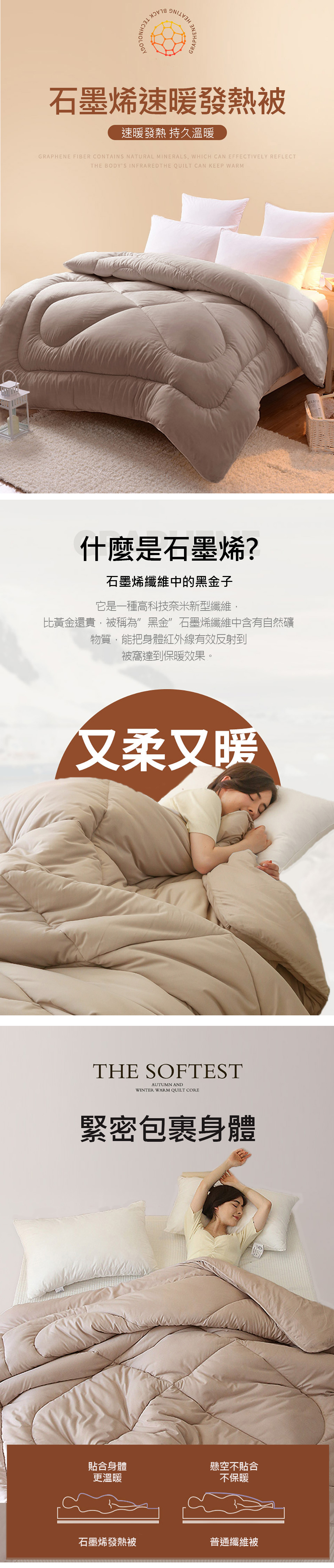 Albert家居《茶棕》台灣製 石墨烯遠紅外線可水洗冬被 180×210cm (抑菌被 暖被 石墨烯被)