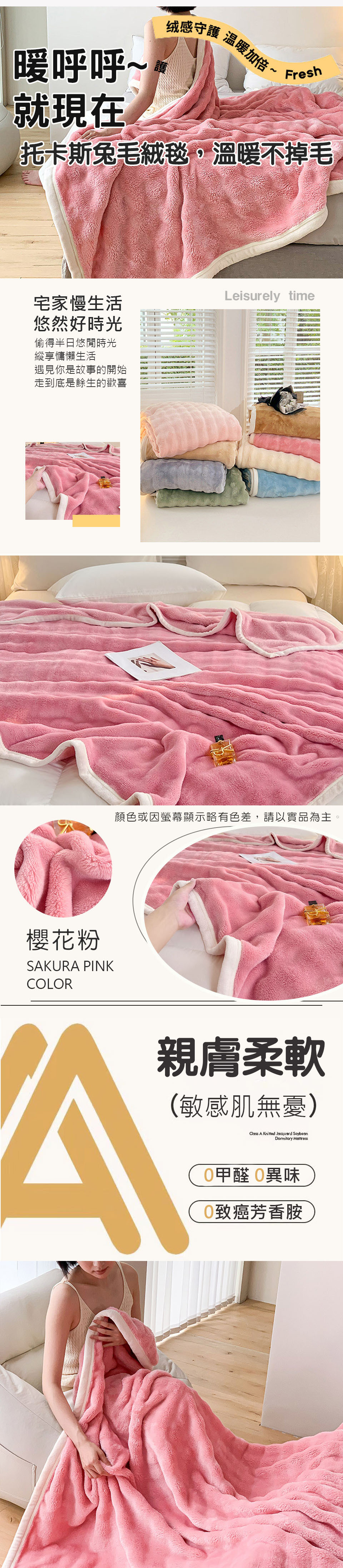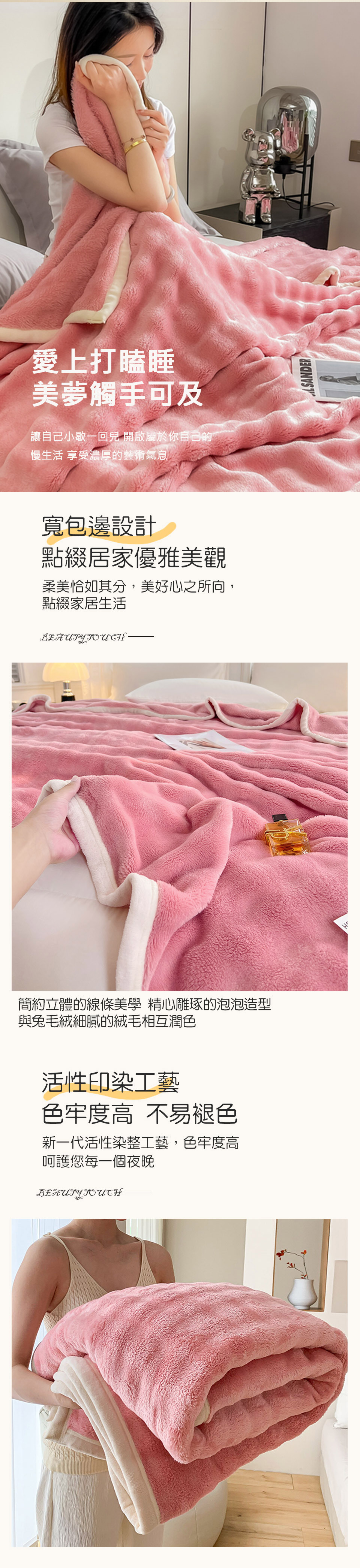 Albert家居《櫻花粉》托斯卡泡泡兔毛絨毯1入 (150x206cm 保暖被/冬被/毛毯/毯子)