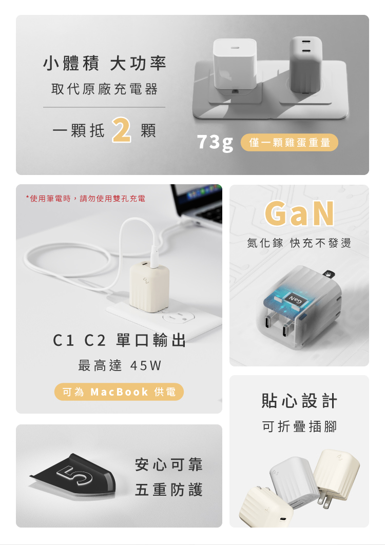 產品名稱:Allite Mini Go 45W 2C 氮化鎵雙孔快充頭