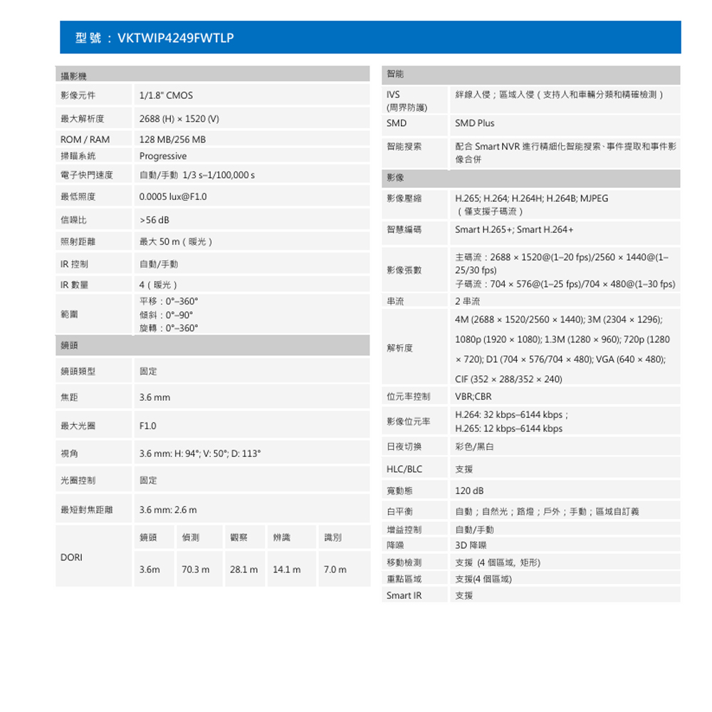 -最大4 MP (2688 × 1520) @20 fps,並支援2560×1440(2560×1440)@25/30 fps