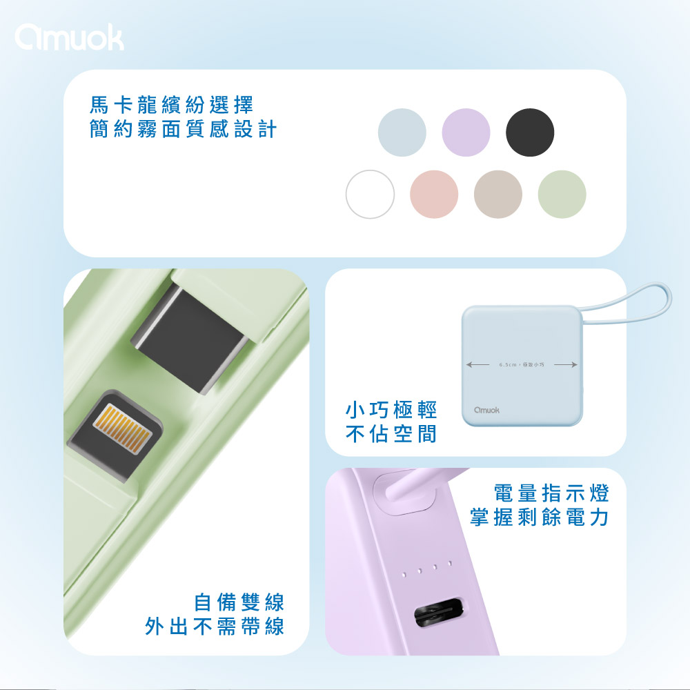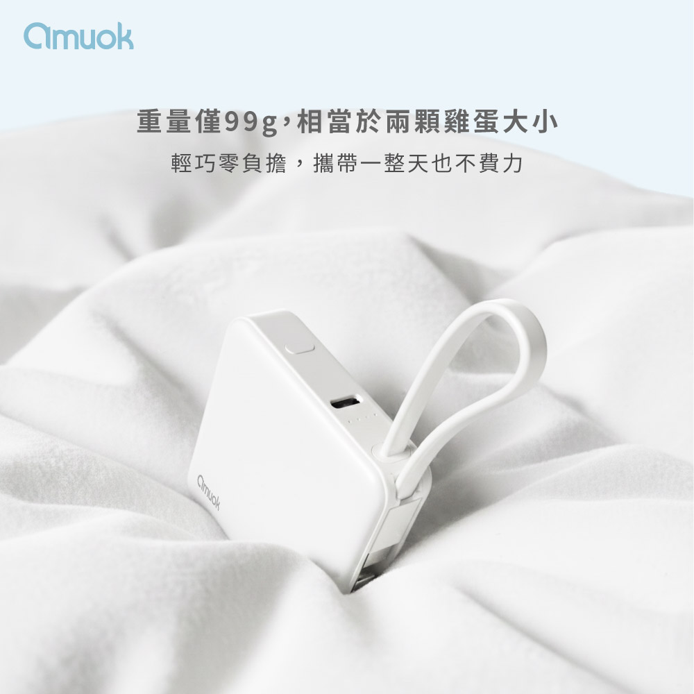 【amuok】5000mAh Cube迷你雙線行動電源 行充 自帶線行動電源
