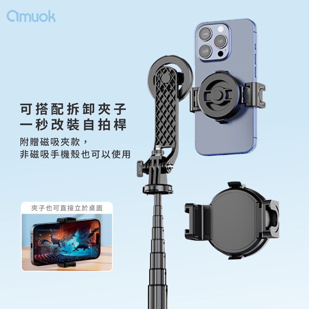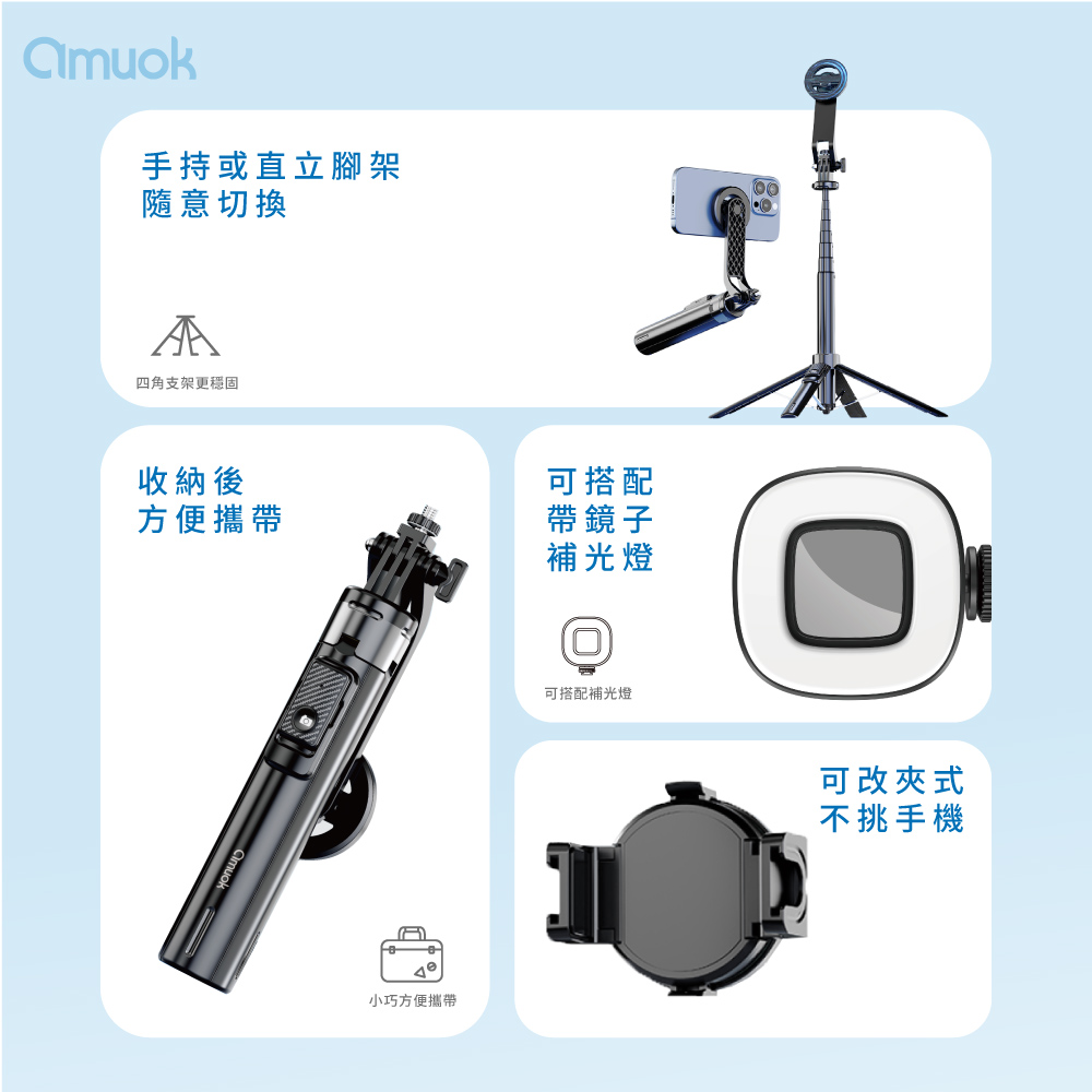 【amuok】多合一2.0直播磁吸自拍桿 補光燈 補光燈手持自拍器