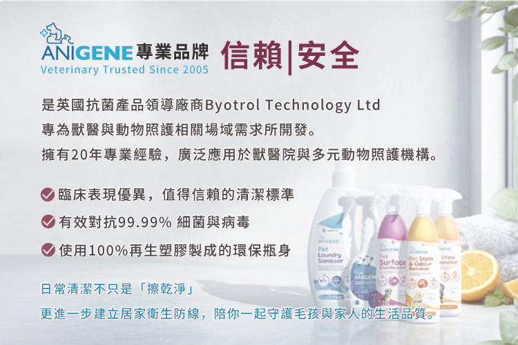 【倆寶貝精品館】【英國Byopet 升級版】Anigene愛立潔 寵物環境專用-3合1除臭抗菌清潔噴劑 750ml