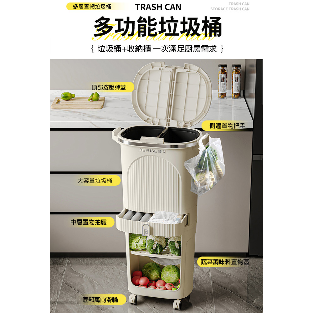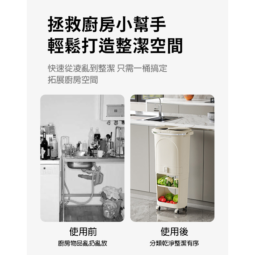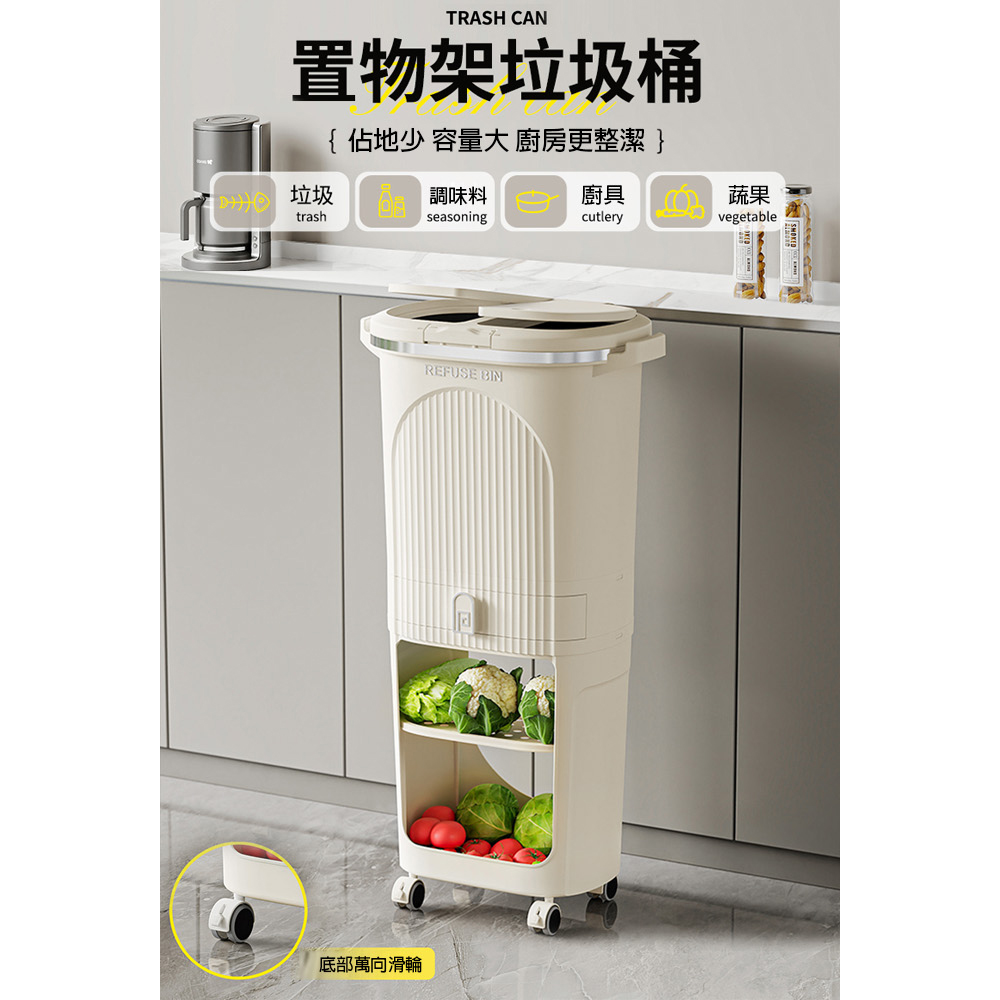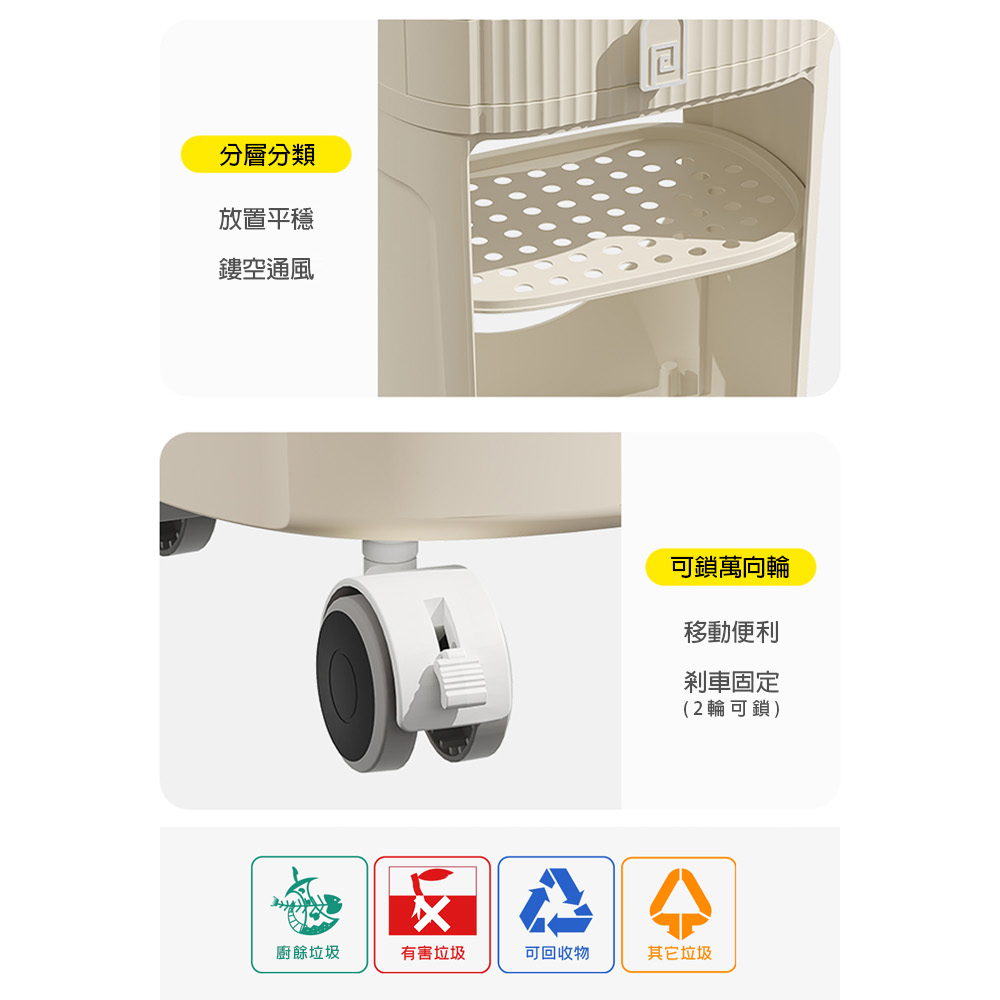 【AOTTO】大容量附輪雙蓋不彎腰分類垃圾桶(AS-603)