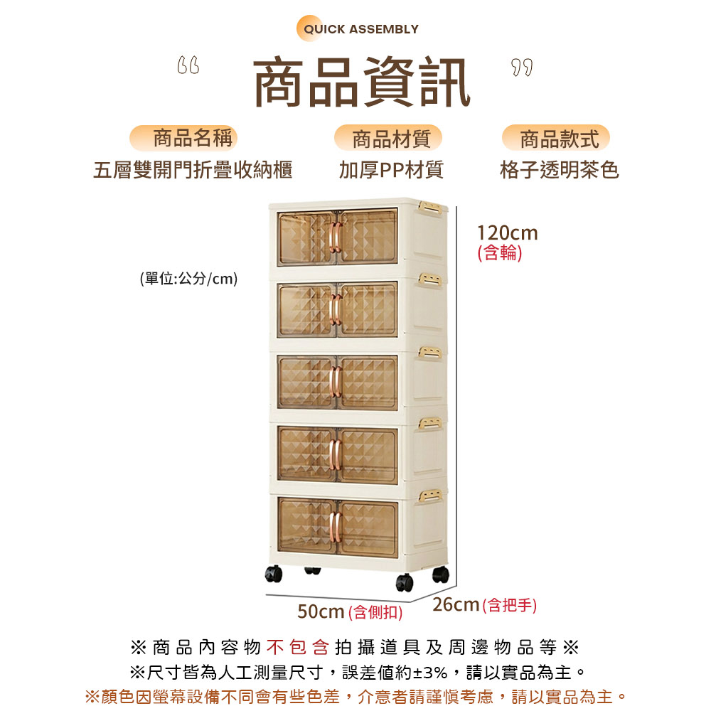 【AOTTO】50面寬雙開門透明可視格子磁吸五層折疊收納櫃(AC-5025)