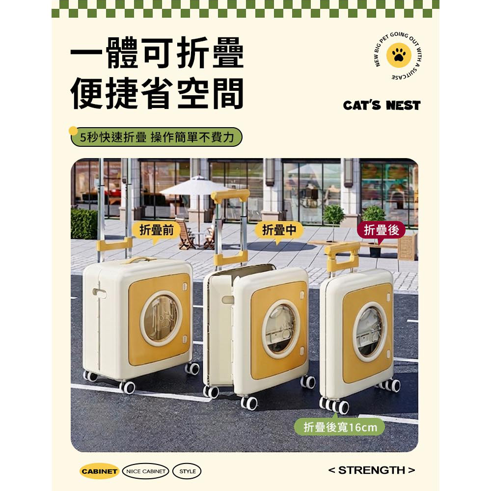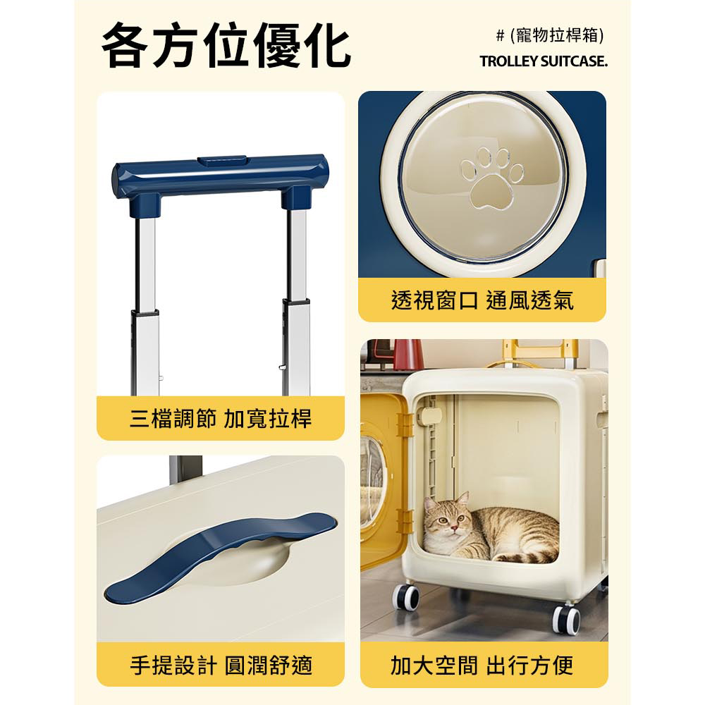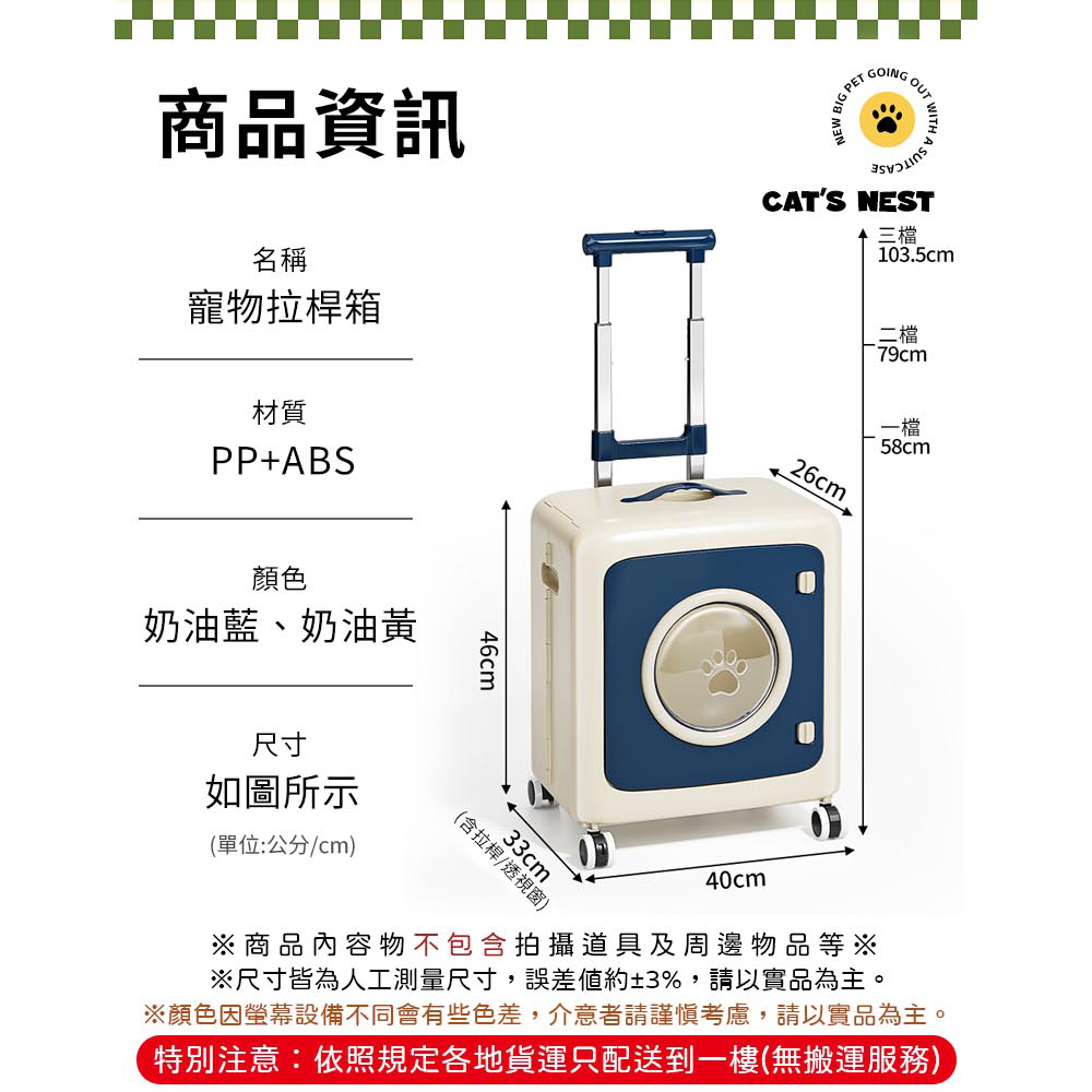 寵物外出箱加大容量 透氣窗口快速折疊 簡單操作萬向滑輪 三檔拉桿尺寸:40*33*58-103.5cm±3%