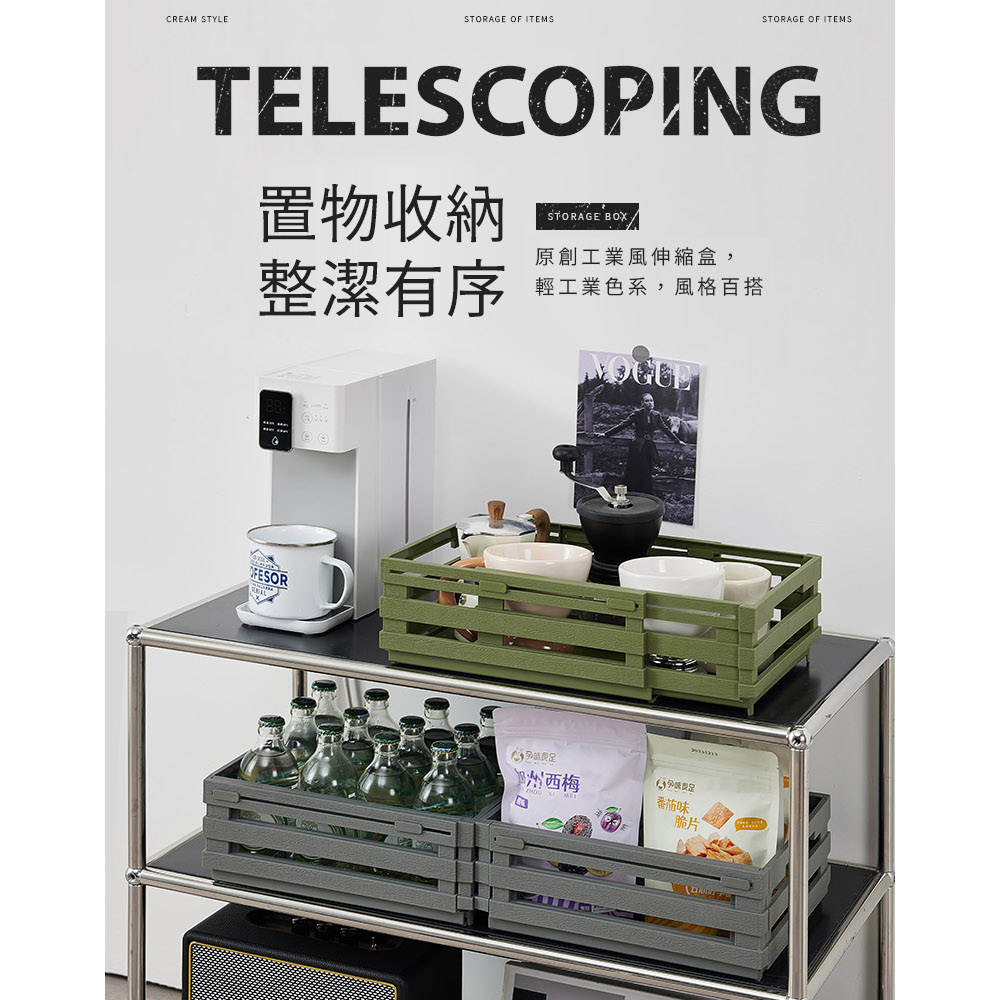 【AOTTO】輕工業風自由伸縮收納籃2入-灰色(AL-609GR*2)