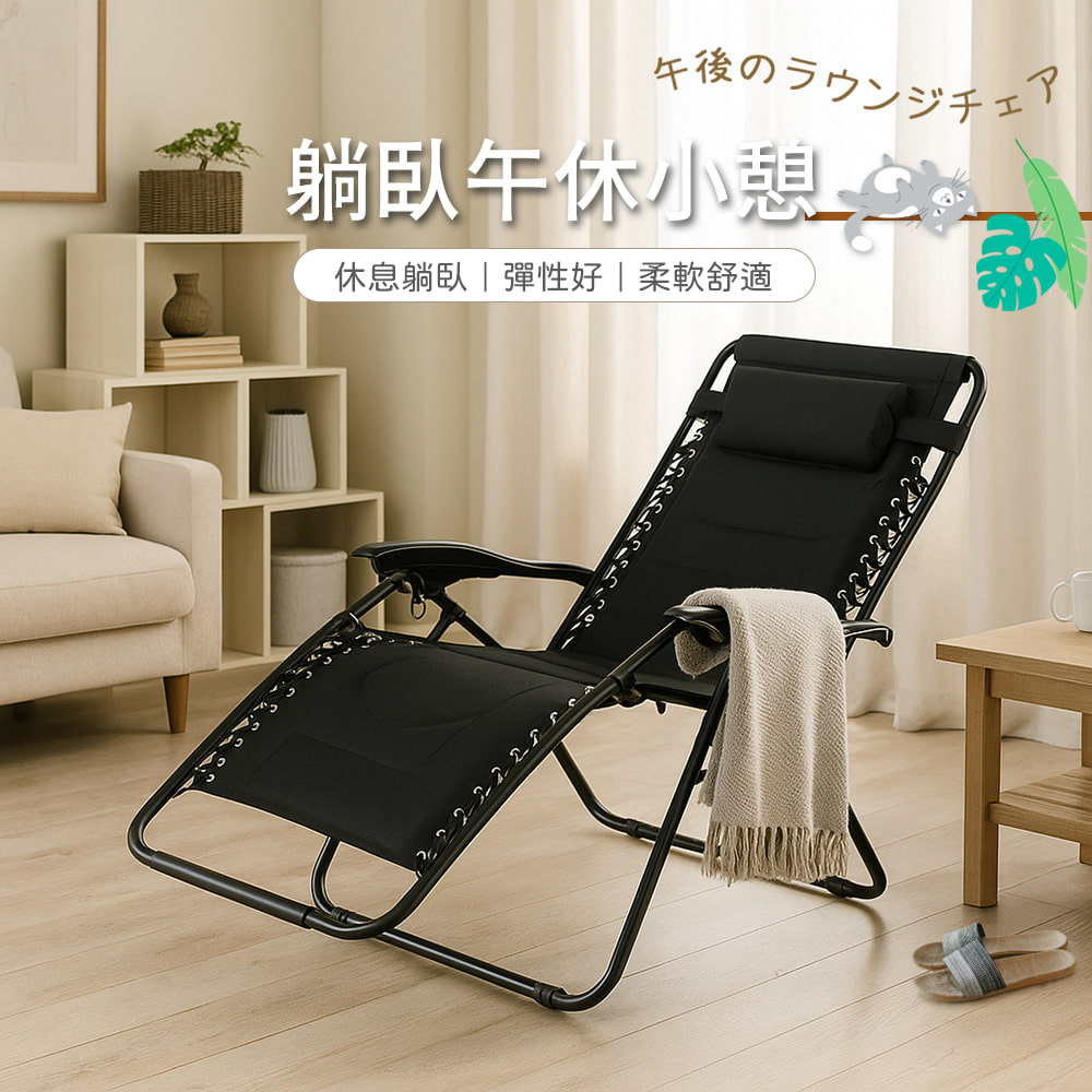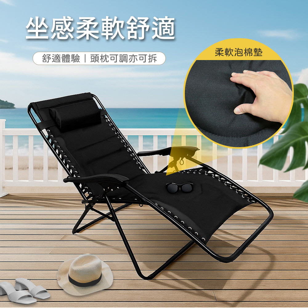 【AOTTO】升級款舒適頭枕加厚泡棉折疊躺椅(LC-002)