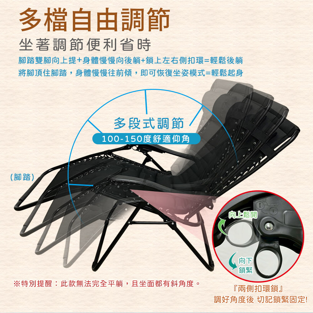 【AOTTO】無段式高承重透氣休閒躺椅(LC-001)