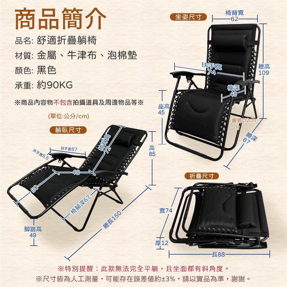 尺寸:74*87*109cm±3% 材質:金屬+牛津布+泡棉墊