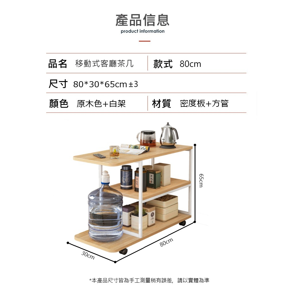 一桌多用 不佔空間附萬向輪 可輕鬆移動 開放式設計 便捷拿取結實架構 承重強尺寸:80*30*65CM(±3%)材質:密度板顏色:原木色+白架※注意事項:1.此商品需自行組裝,組裝後恕不退貨,請確認商品零件無誤再組裝。2.由於拍攝光線因素影響,可能導致顏色與實物有些微偏差,圖片僅供參考,實際商品依供貨樣式為準。3.購買前請先量測使用區域尺寸,確定無誤再購買以免造成尺寸不合之狀況,敬請謹慎選購。4.此商品不含情境搭配商品及其他擺設品,拍攝與實品略有色差,顏色請以實際收到商品為準。5.商品組裝前請確認零件有無瑕疵缺件。商品如經拆封、組裝、使用、拆解以致缺乏完整性及失去再販售價值時,恕無法退(換)貨!6.本賣場商品不提供試用,若因消費者的試用導致接觸性的磨損,將影響到您的退貨權益,如有瑕疵請在24小時內回報。 7.如有任何對商品的問題可聊聊詢問,避免產生購物過程不愉快交易! 8.溫馨提醒,鑑賞期非試用期, 敬請確認商品無瑕庛問題並確認購買後再使用。9.配送地點僅止於台灣本島,外島地區(澎湖,金門,馬祖,綠島,小琉球 )無提供服務,敬請見諒。 10.全國各區及各場所僅送到一樓,並無配上樓層服務。11.部分偏遠地區需加收聯運費,實際區域以配合貨運公司官網公布為主!https://s-cf-tw.shopeesz.com/file/2a1c4b7ab60fee01d3b41029ea51929dhttps://s-cf-tw.shopeesz.com/file/52b2bc19ddebcdb0375d8ab2a5d7c953