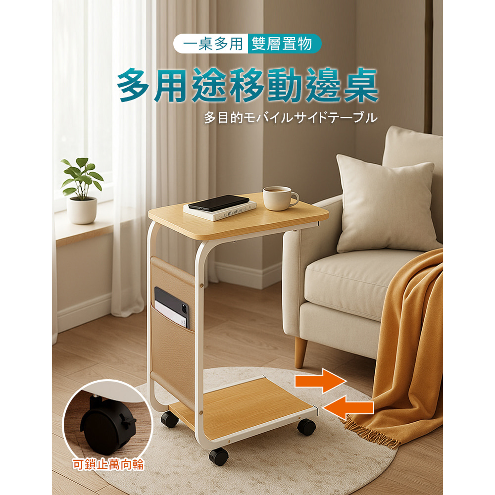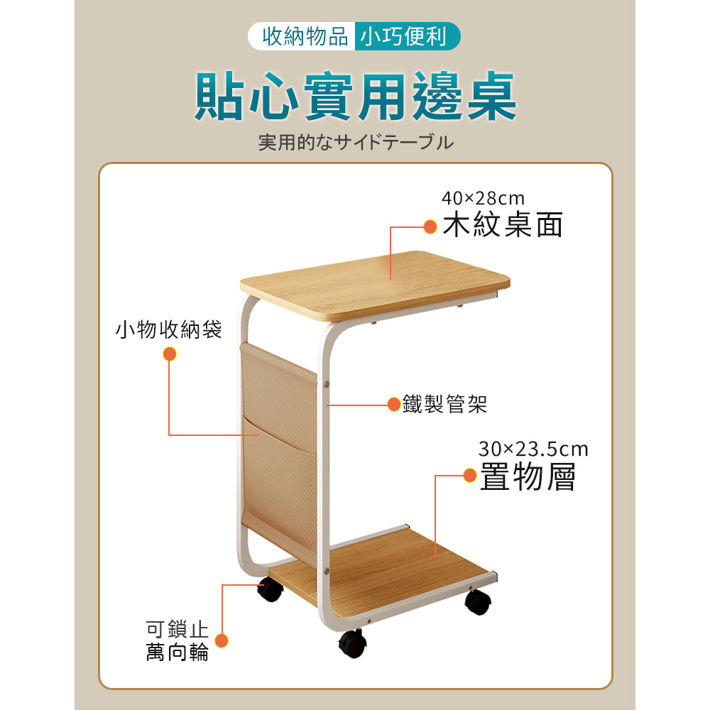 【AOTTO】簡約附輪雙層置物邊桌(FT-301)