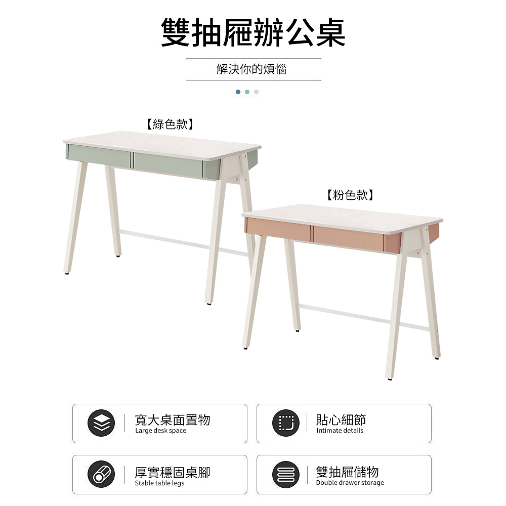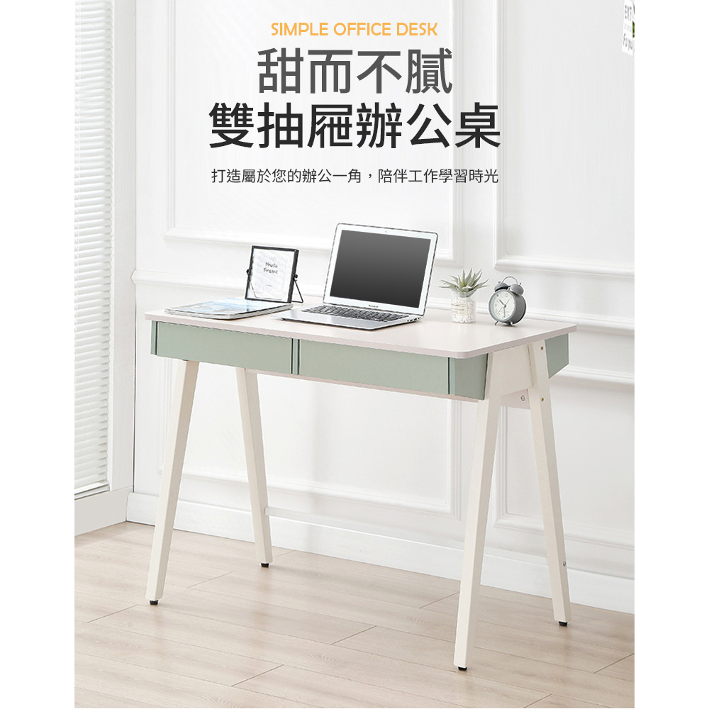 【AOTTO】北歐風莫蘭迪雙抽辦公桌-100cm((FT-504)