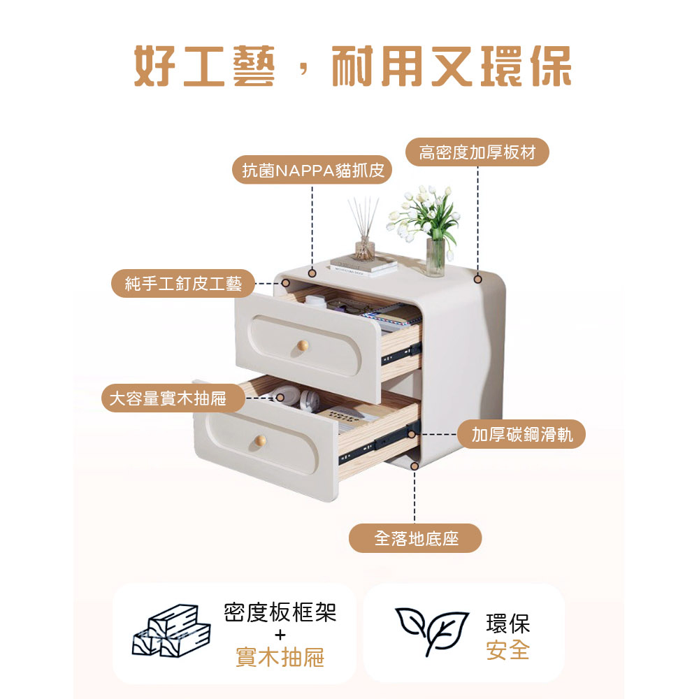尺寸:40*40*47cm±3% 材質:密度板+實木抽屜