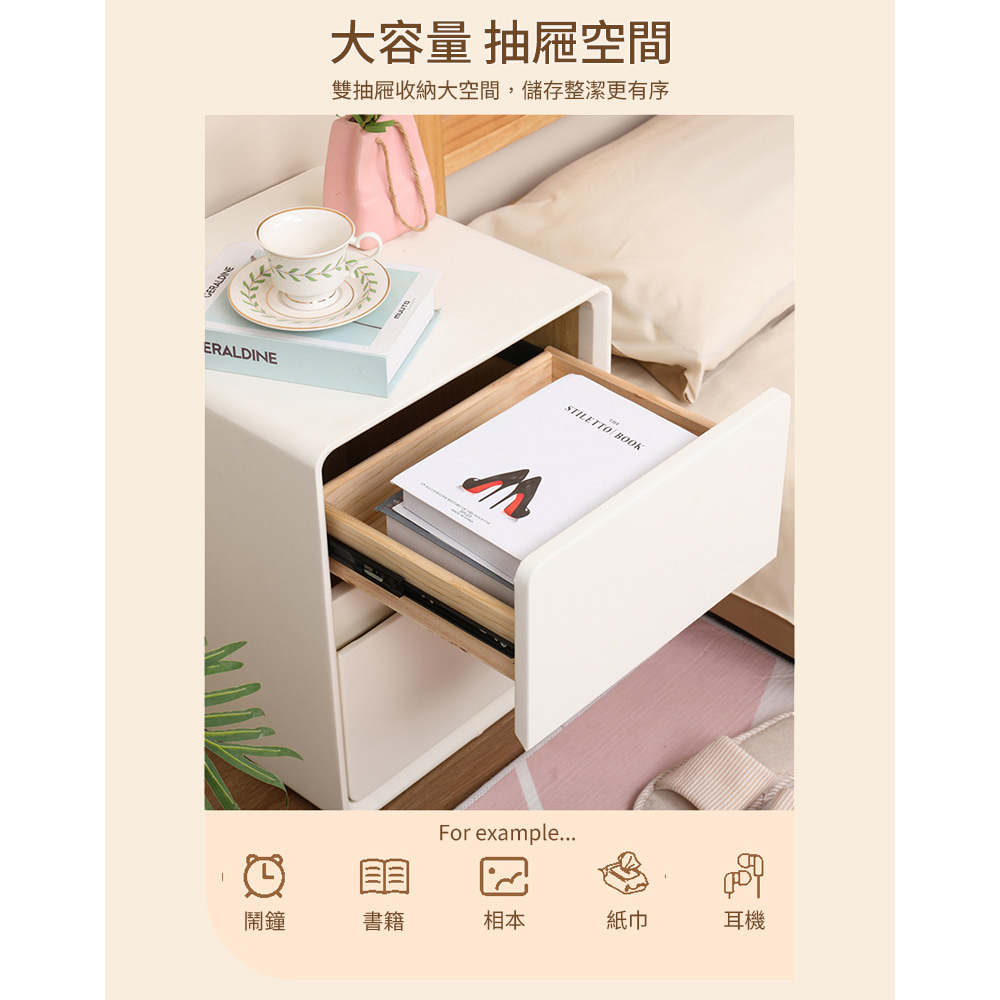 【AOTTO】北歐簡約雙層實木抽屜床頭櫃(FT-004)