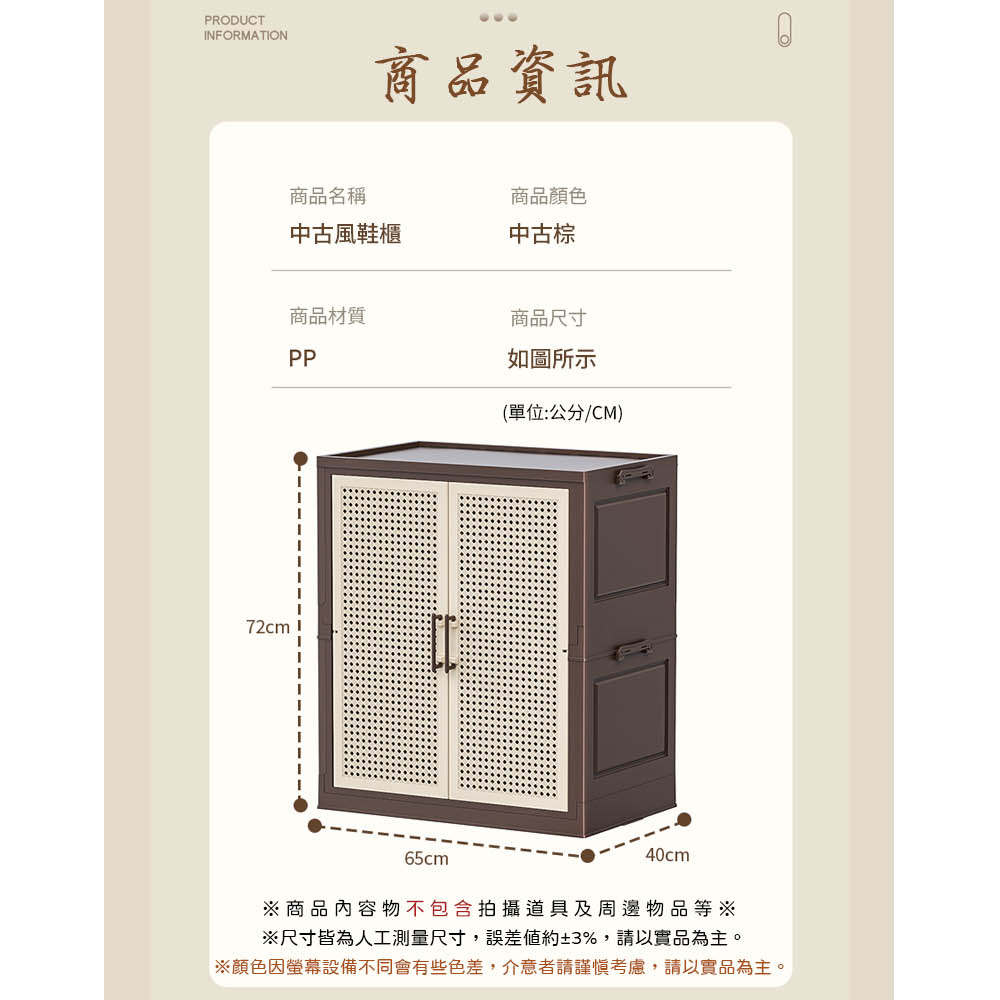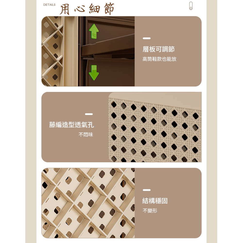 層板可調節 不拘限鞋款 藤編透氣孔 防塵不悶味 承重力強 結實穩固支撐尺寸:65*40*72cm±3%