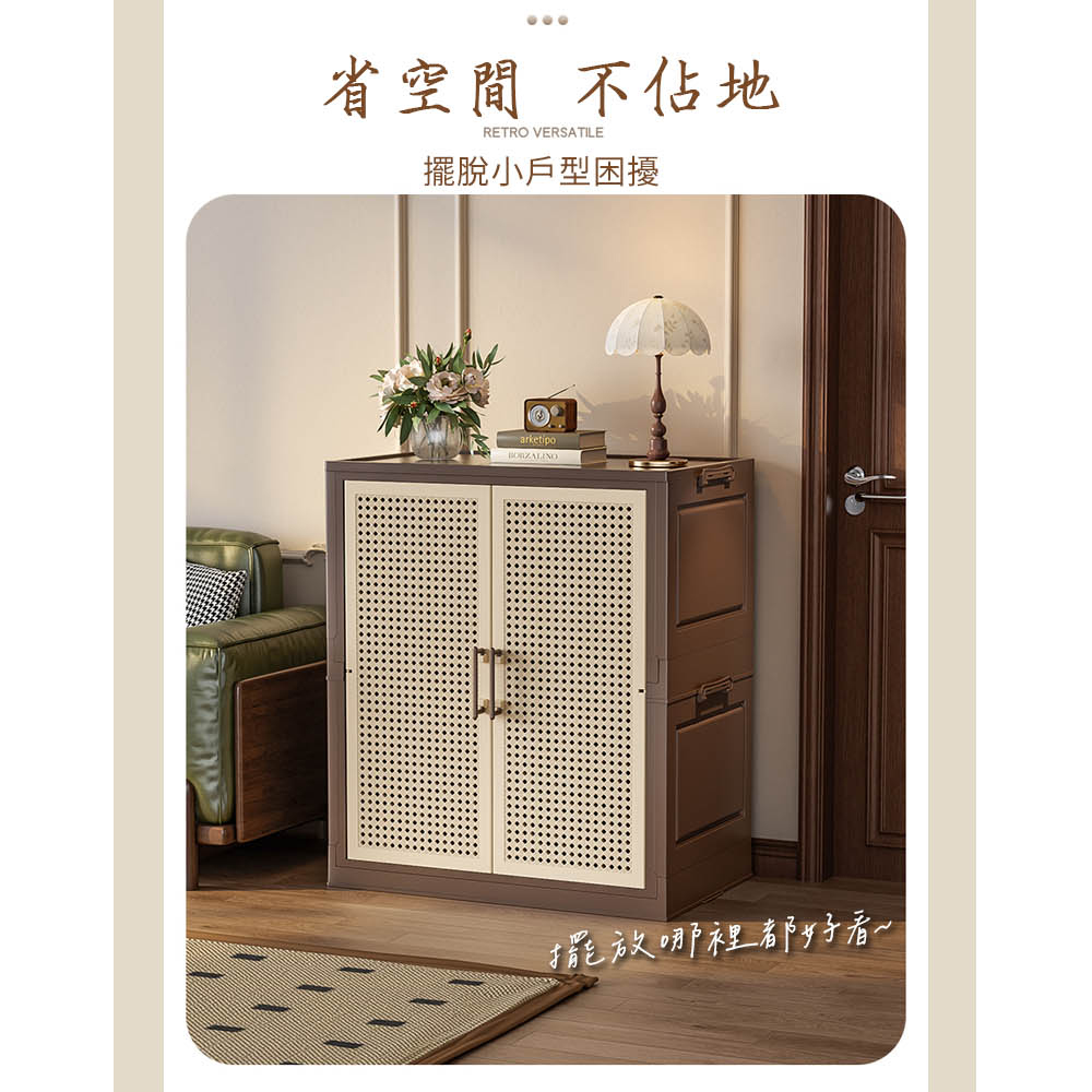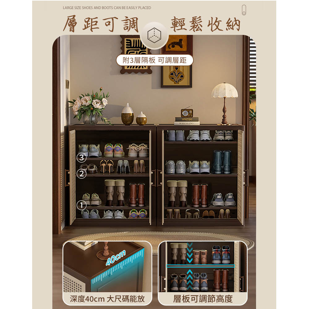 【AOTTO】65面寬中古藤編可調節收納鞋櫃(AC-218)