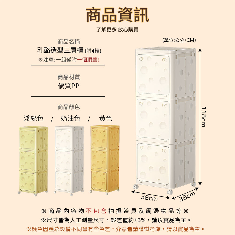 多格分層 大容量儲物 加厚材質 耐重穩固 附輪好移動 輕鬆便捷 尺寸:38*38*118cm±3%