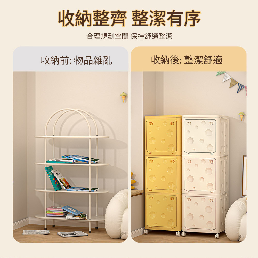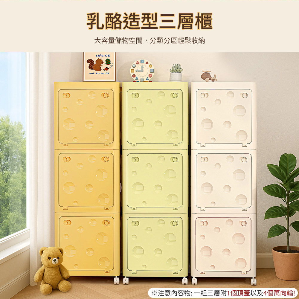 【AOTTO】38面寬乳酪造型附輪三層收納櫃-黃色(AC-209Y)