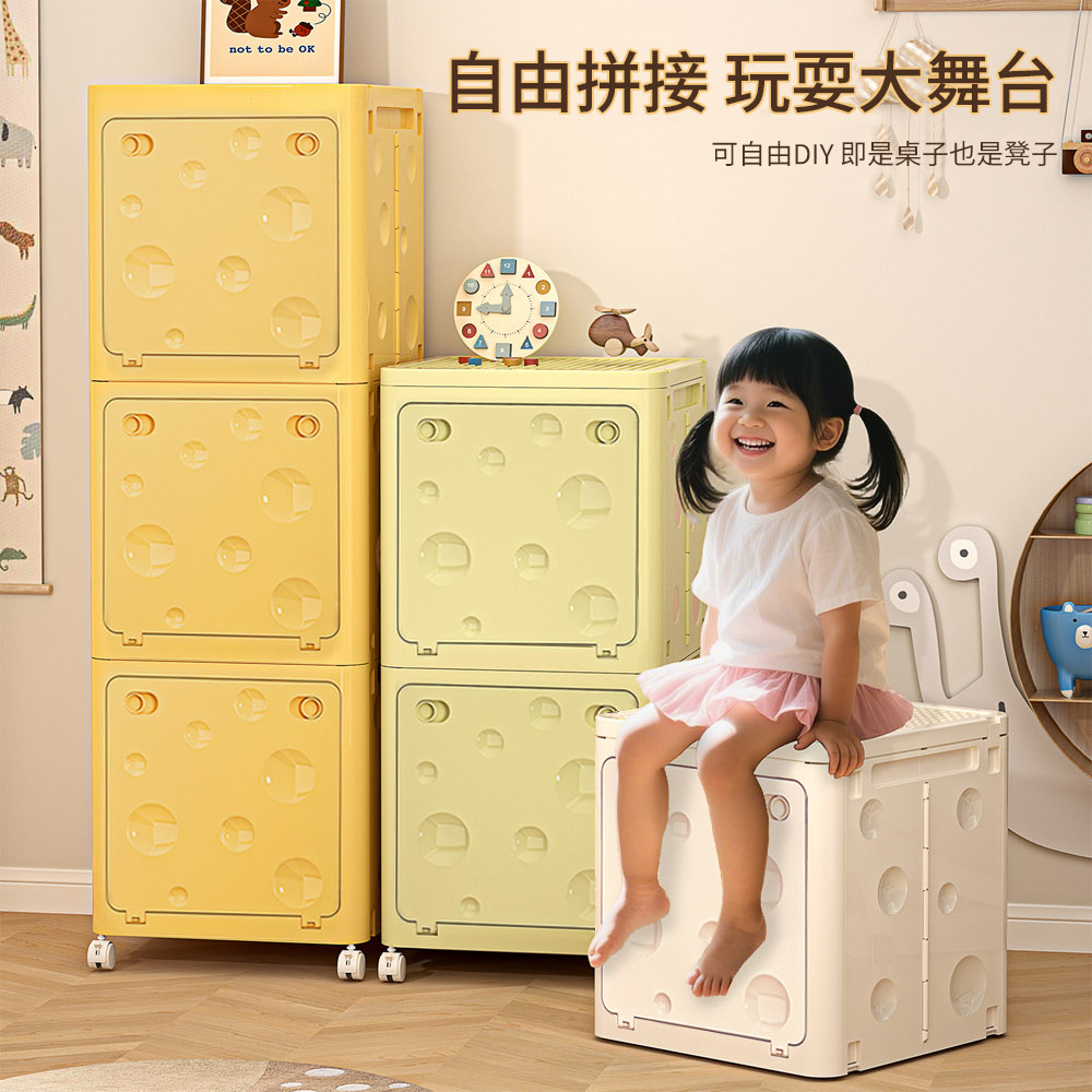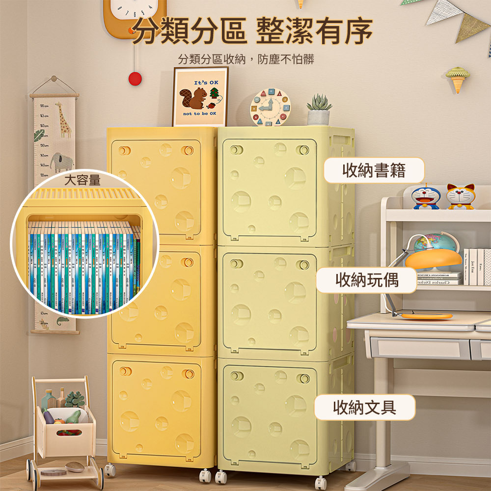 【AOTTO】38面寬乳酪造型附輪三層收納櫃-奶油色(AC-209W)