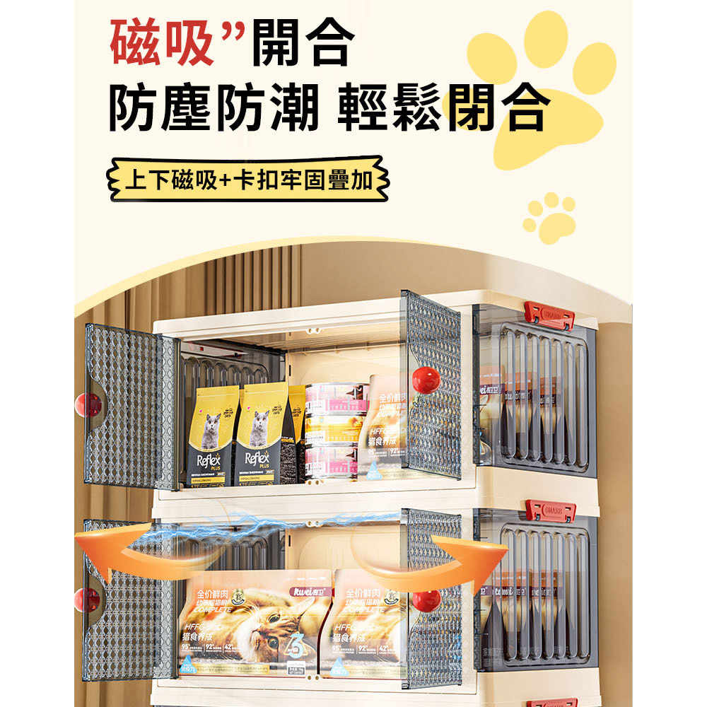 是收納櫃也是貓窩!!磁吸開門 便捷取物 折疊收納 簡易安裝頂部置物 底部貓窩尺寸:43.5*27.5*77cm±3%