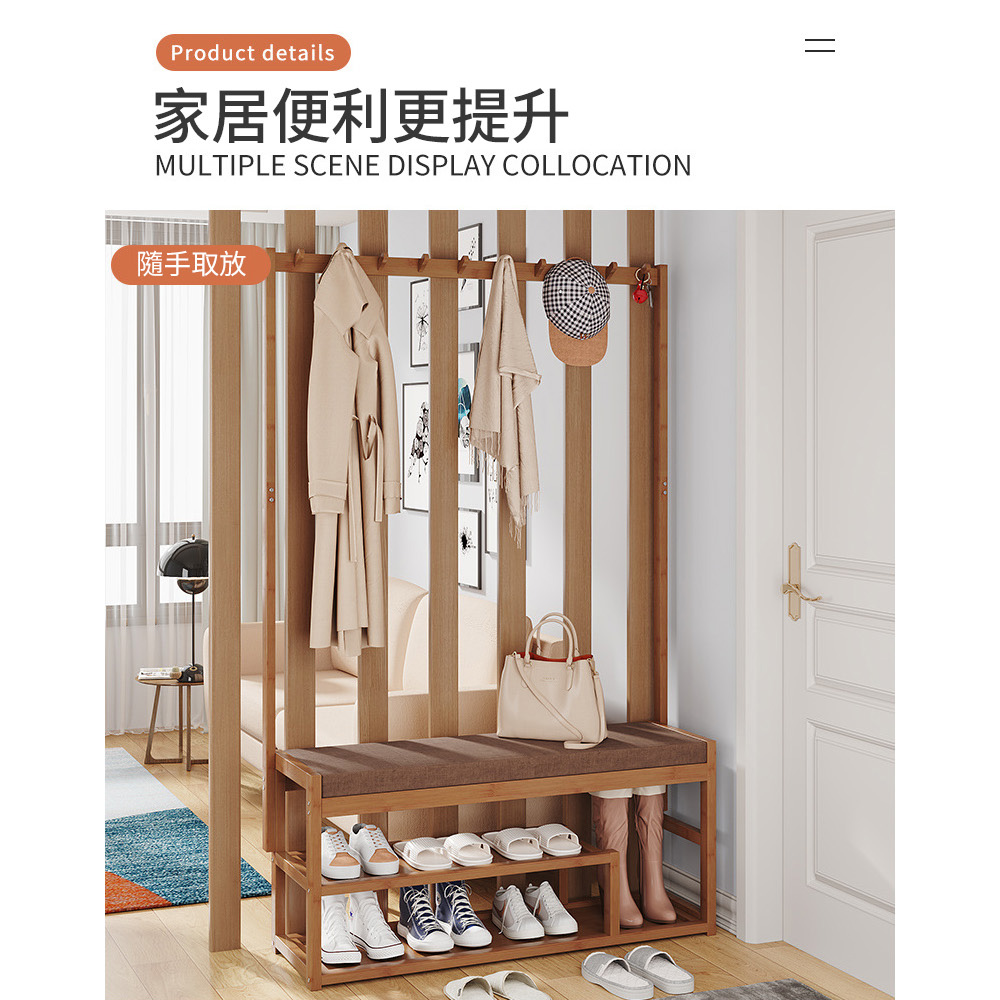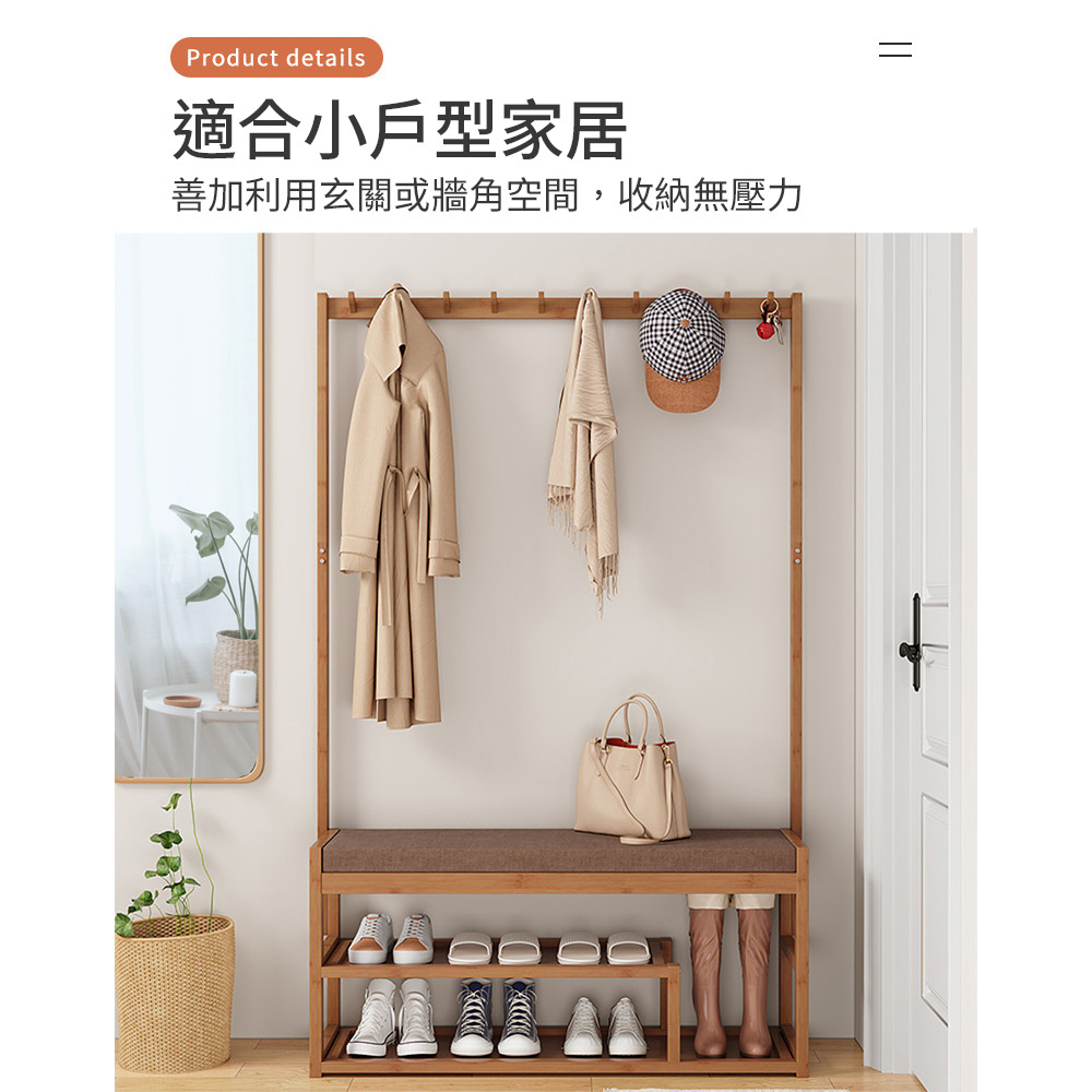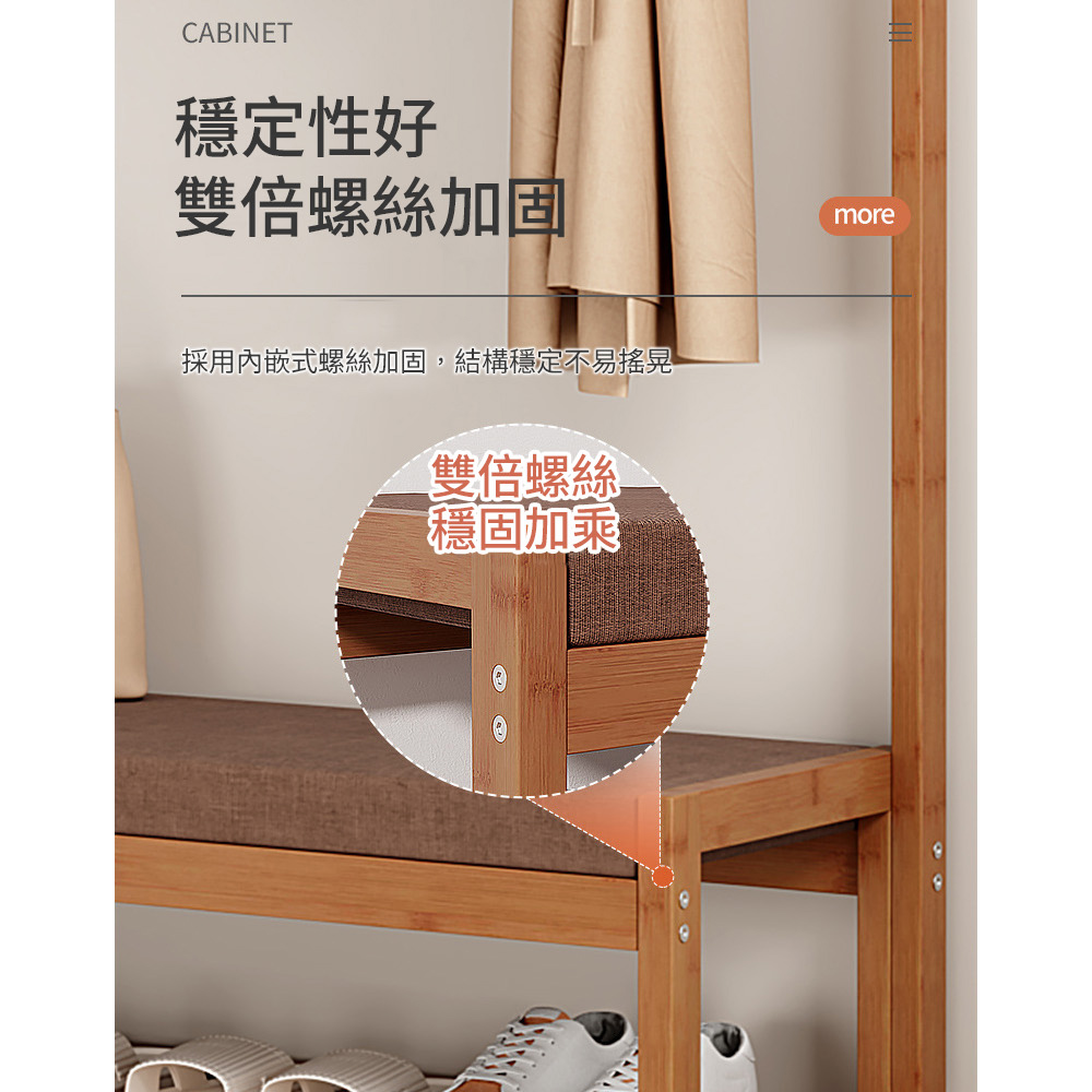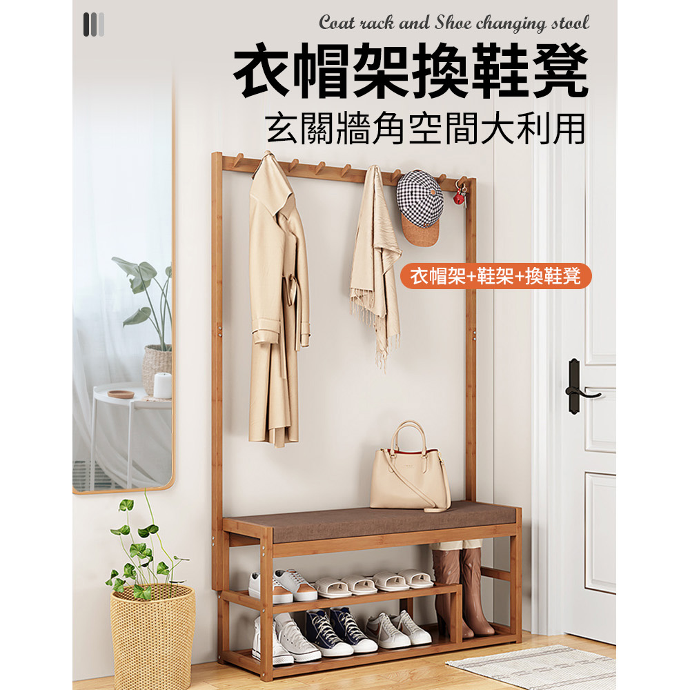 衣帽架+換鞋凳 上下收納 不佔空間 楠竹板材 穩固耐用