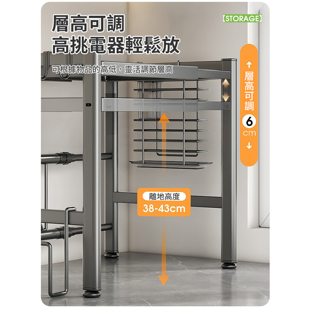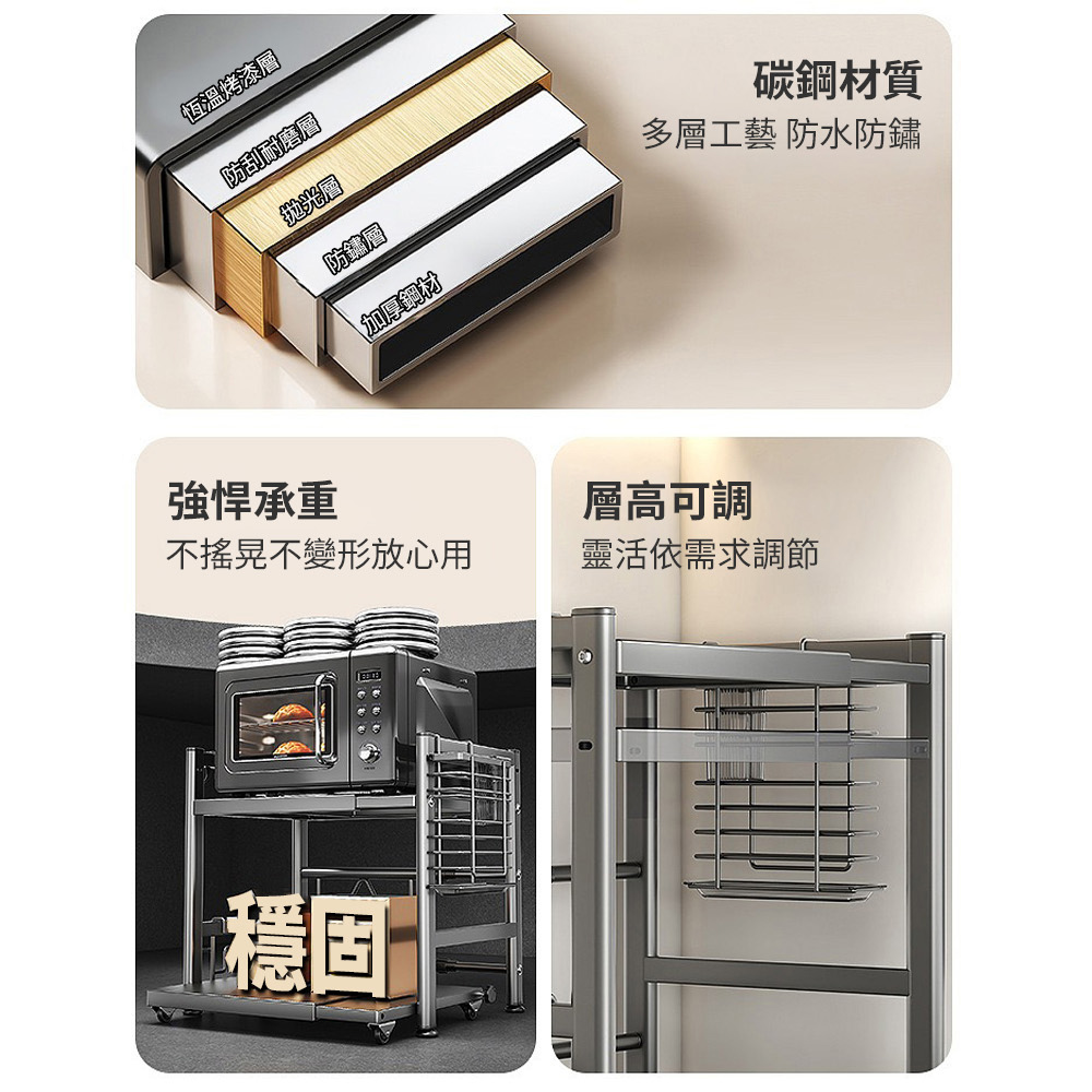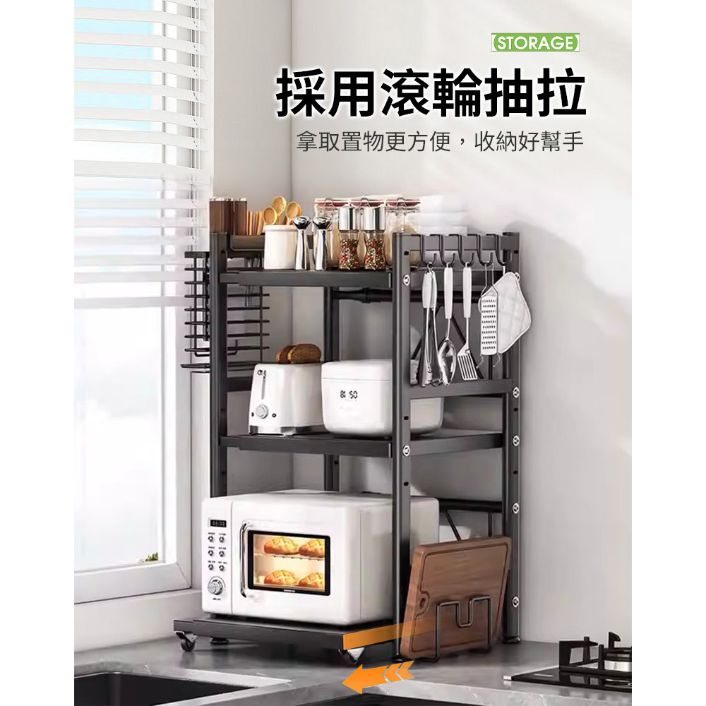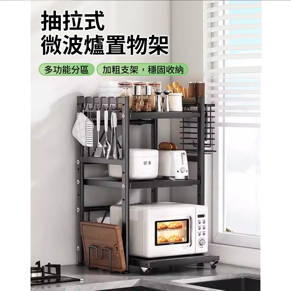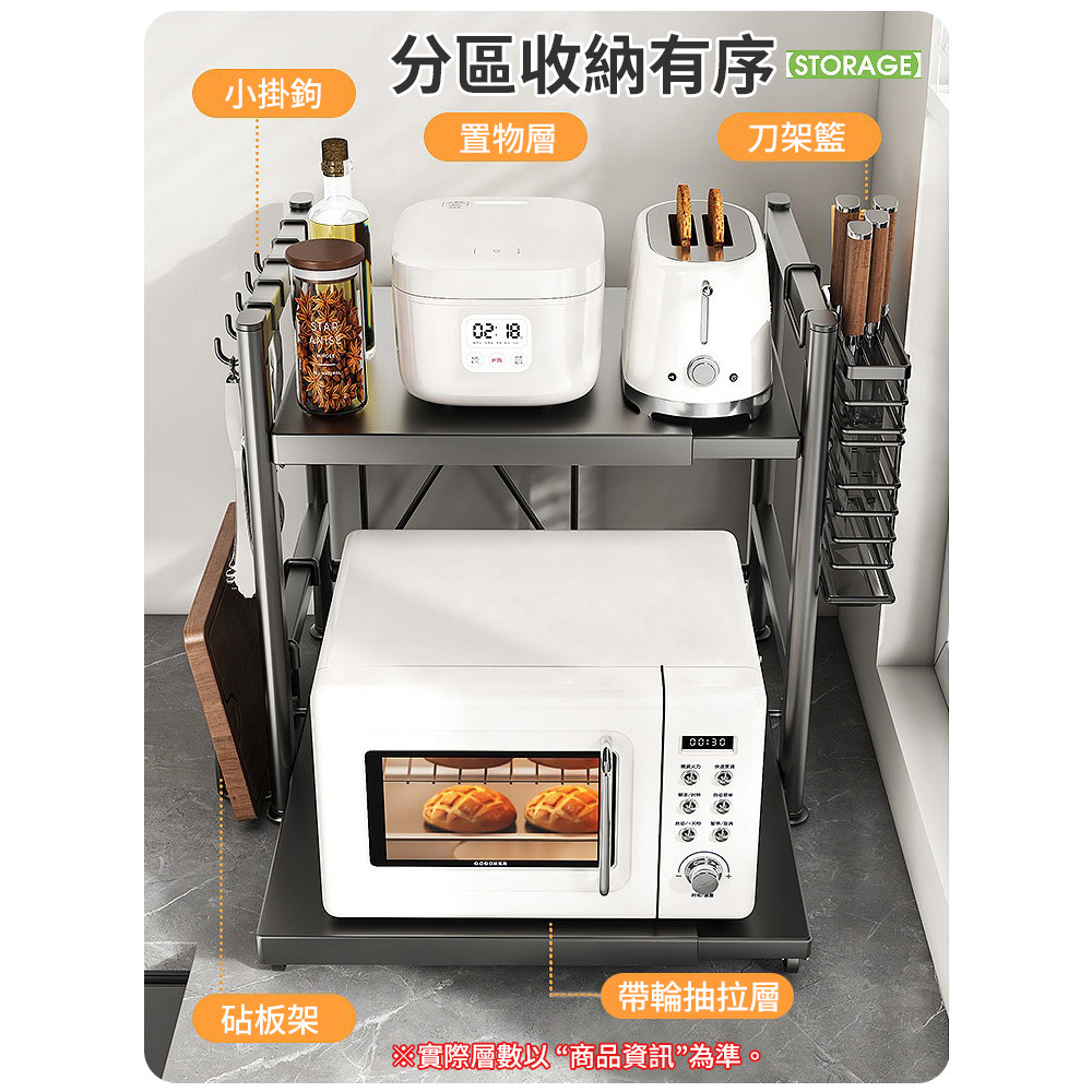 【AOTTO】升級可伸縮調節廚房微波爐置物架-雙層(KC-003)