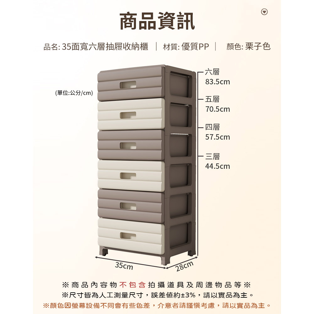 【AOTTO】35面寬麵包附輪六層抽屜收納櫃-栗子色(AC-035)
