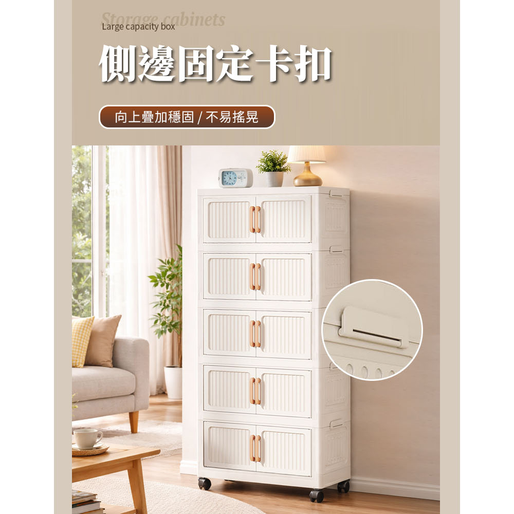 【AOTTO】58面寬五層折疊附輪雙開門收納櫃-透黑款(AC-058BK)